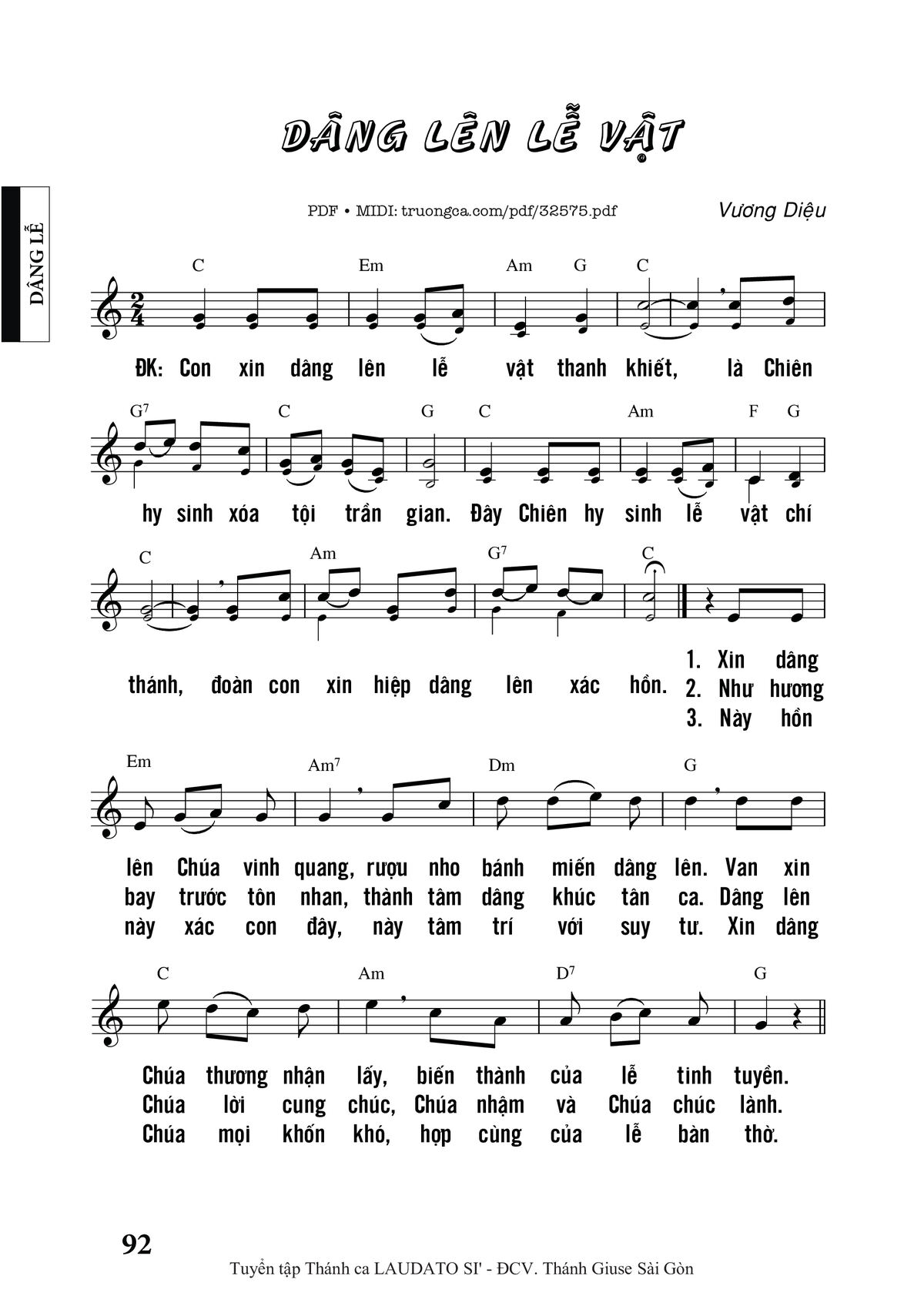 Sheet Dâng Lên Lễ Vật PDF (Vương Diệu), chords