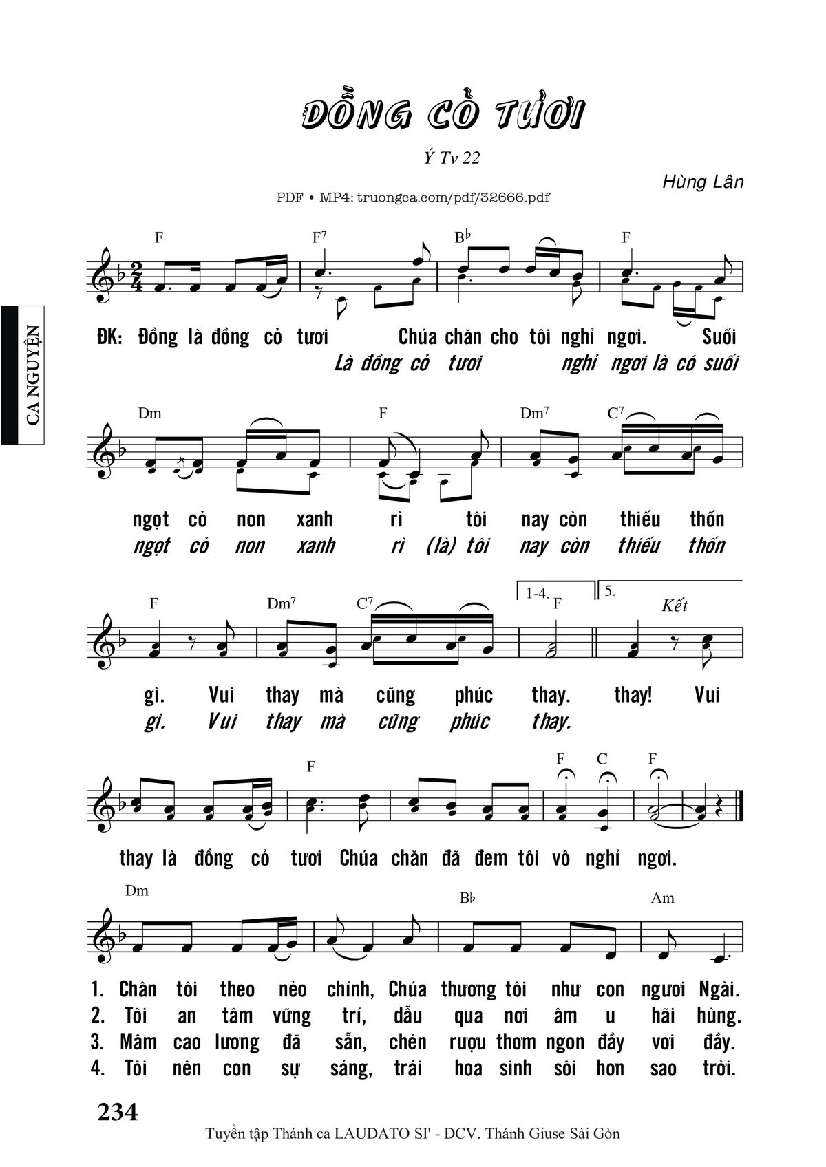 Sheet music Đồng Cỏ Tươi by Hùng Lân and PDF file was posted here to support you to practice singing perfectly. Sheets with notes and chords are for reference only, for non-commercial purposes only, not involved with earning money by buying and selling. Copyright is belong to song writer/author and copyright owner. Truongca.com do not own any copyrighted content. You can download the high-quality PDF files which contain staffs by PDF link above.