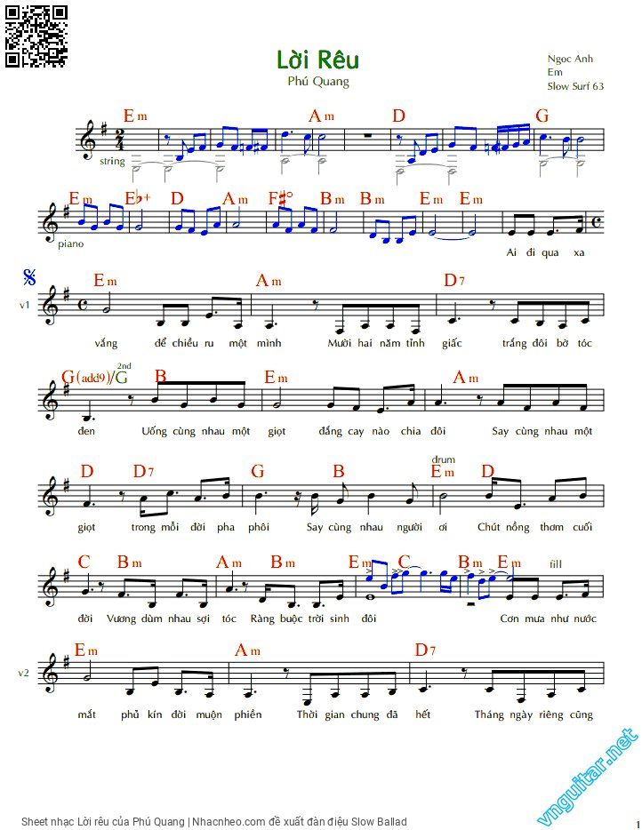 Transposition is the process of moving a song's melody and chords up or down in pitch by a constant interval. The direction of the transposition tool is indicated by a plus (+) sign for up and a minus (-) sign for down. Hover mouse over chords signs to see the chords chart of Lời rêu song.