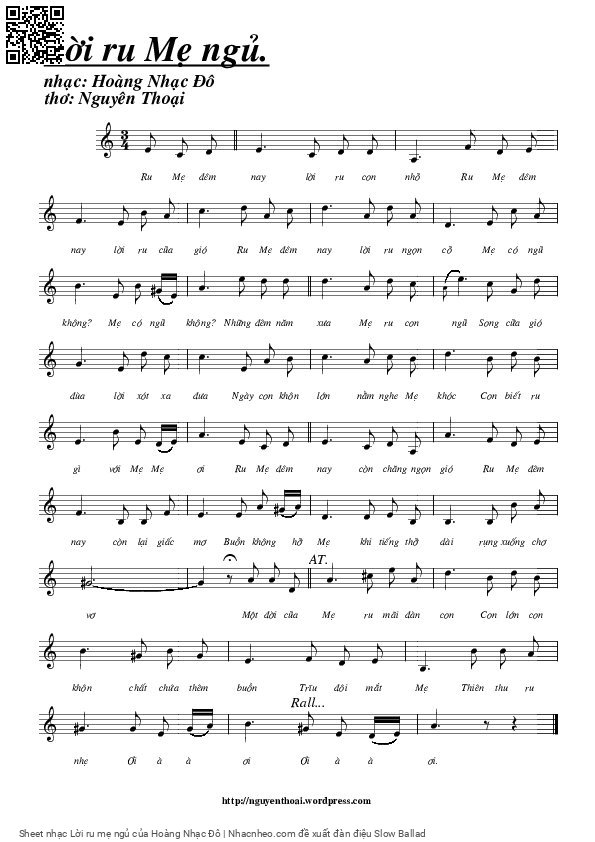 The first sentence: Ru mẹ đêm nay lời ru con nhỏ Ru mẹ đêm nay lời ru của gió