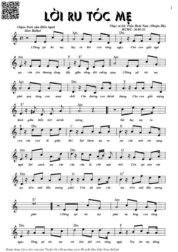 Thuận Hà Từng sợi tóc mẹ bay ru đời con từng ngày [PDF] [Sheet] [Lyrics] [Mp4/Midi]