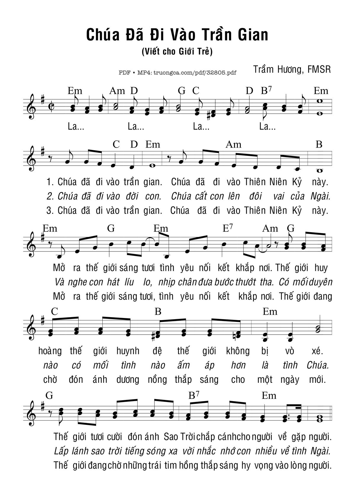 Page 1 of Sheet music PDF Chúa Đã Đi Vào Trần Gian - Trầm Hương