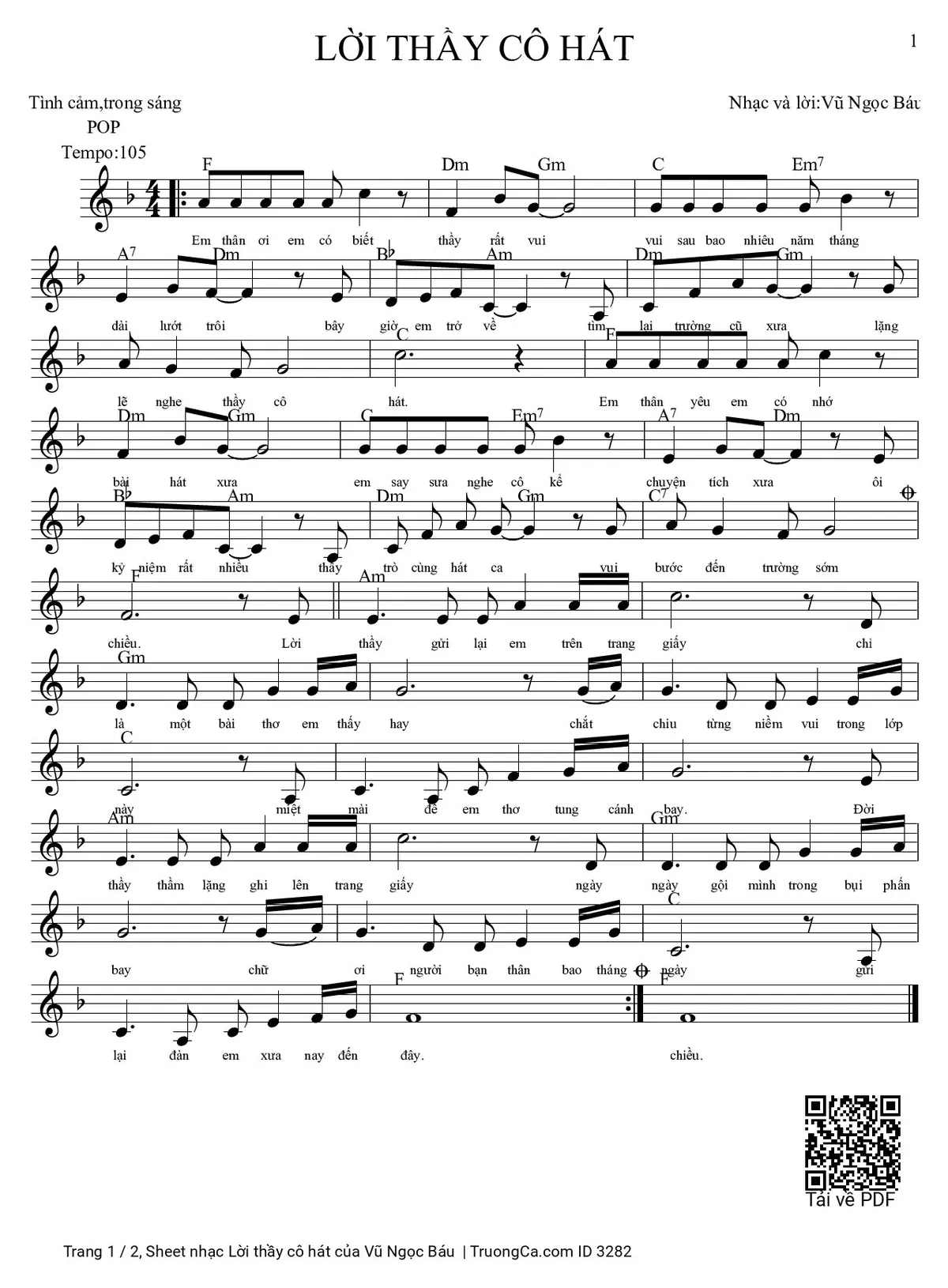 More similar sheets PDF Lời thầy cô hát: