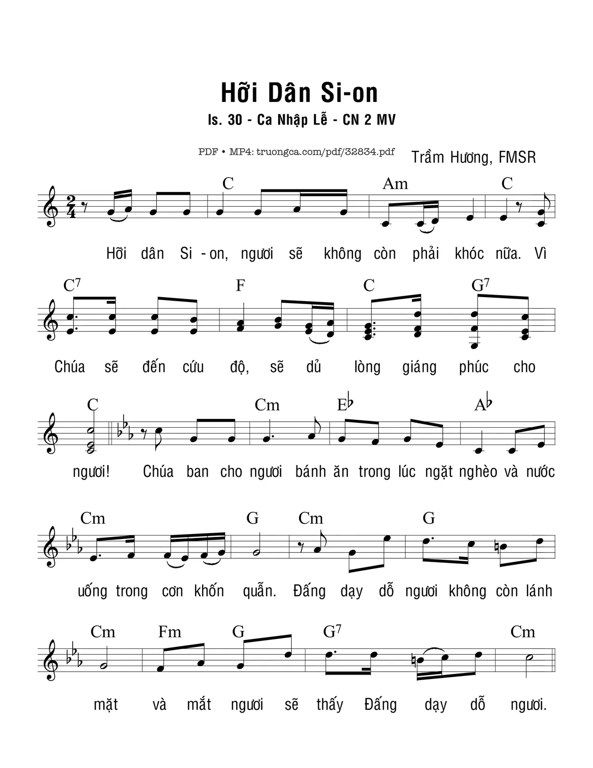 Page 1 of Sheet music PDF Hỡi Dân Sion - Trầm Hương
