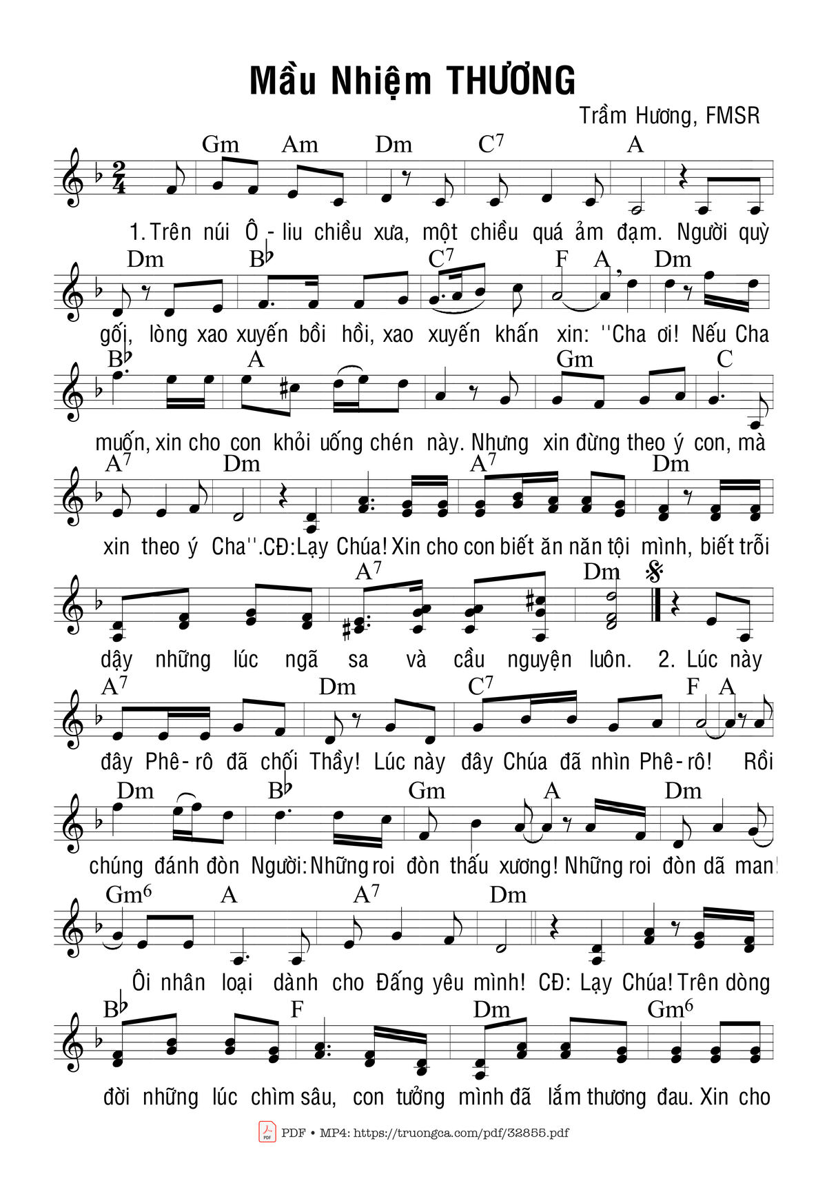 Page 1 of Sheet music PDF Mầu Nhiệm Thương - Trầm Hương