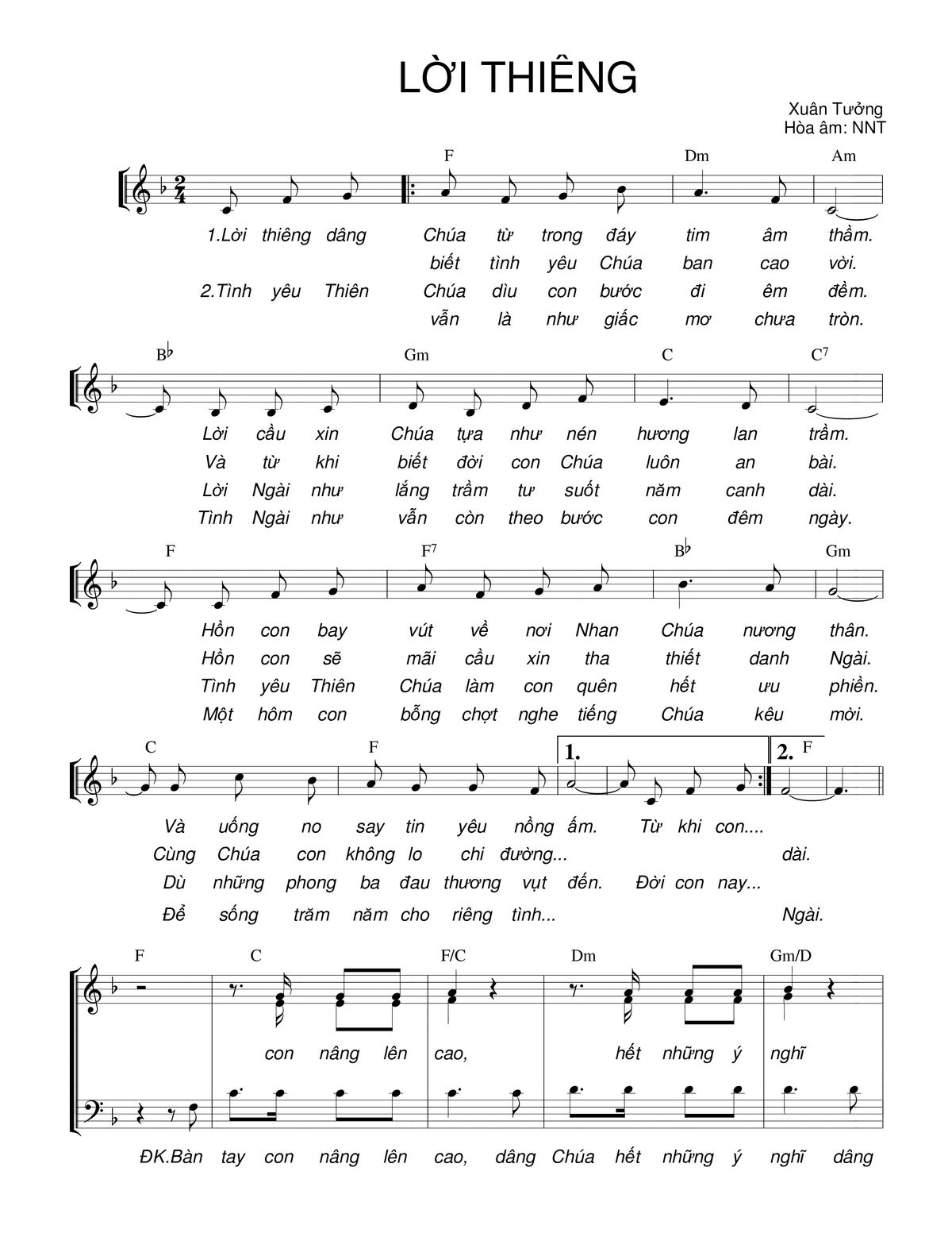 Xuân Tưởng Lời thiêng dân Chúa từ trong đáy tim âm thầm [PDF] [Sheet] [Lyrics] [Mp4/Midi]