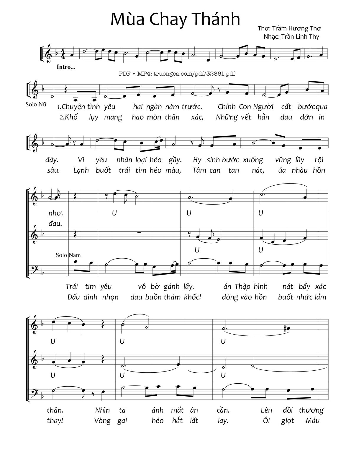 Sheet music Mùa Chay Thánh by Trầm Hương and PDF file was posted here to support you to practice singing perfectly. Sheets with notes and chords are for reference only, for non-commercial purposes only, not involved with earning money by buying and selling. Copyright is belong to song writer/author and copyright owner. Truongca.com do not own any copyrighted content. You can download the high-quality PDF files which contain staffs by PDF link above.