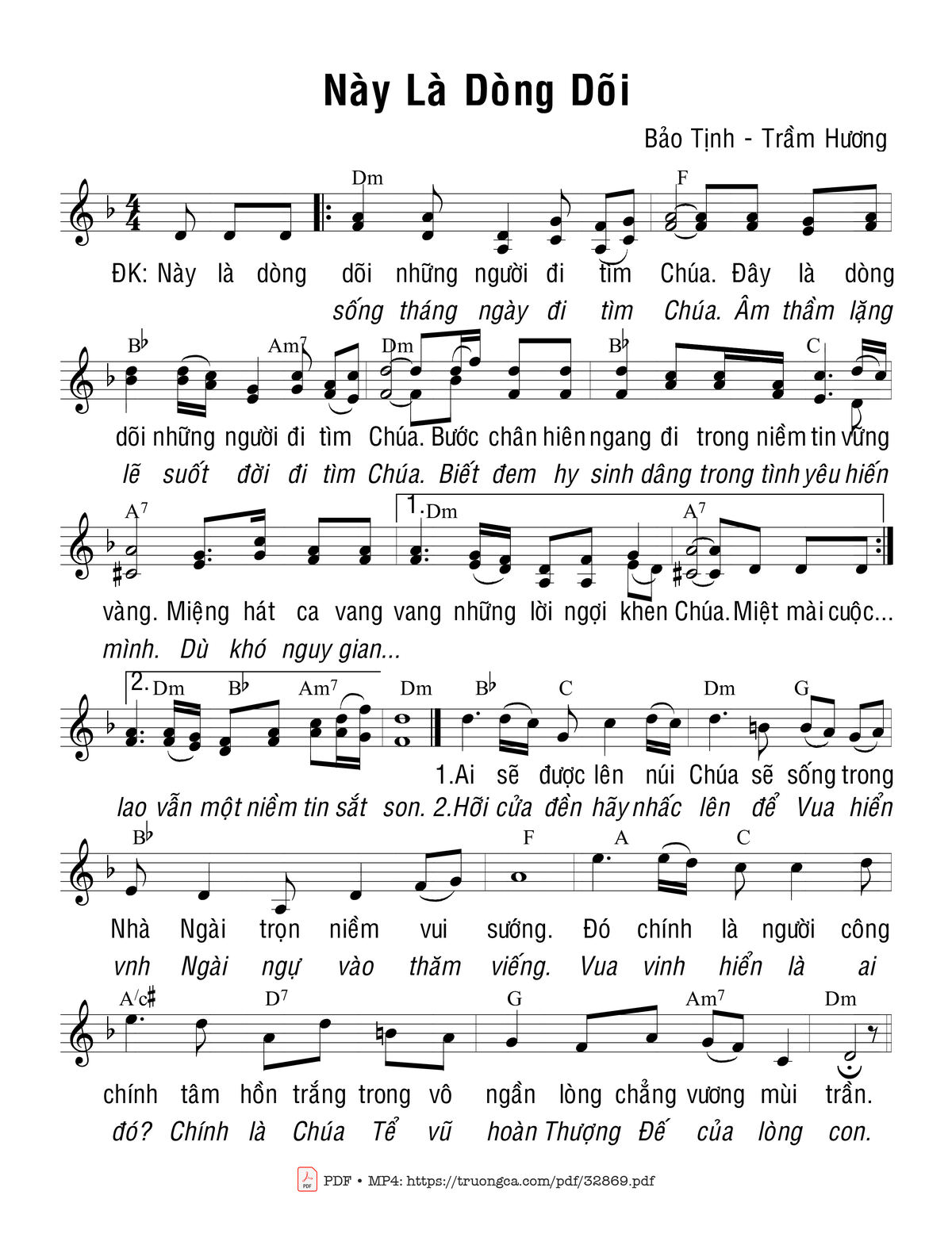 Sheet music Này Là Dòng Dõi by Trầm Hương and PDF file was posted here to support you to practice singing perfectly. Sheets with notes and chords are for reference only, for non-commercial purposes only, not involved with earning money by buying and selling. Copyright is belong to song writer/author and copyright owner. Truongca.com do not own any copyrighted content. You can download the high-quality PDF files which contain staffs by PDF link above.