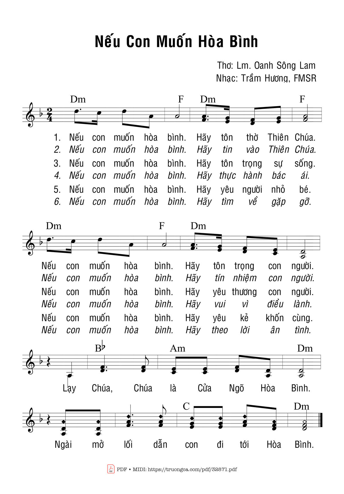 Sheet PDF with the same name Nếu Con Muốn Hòa Bình: