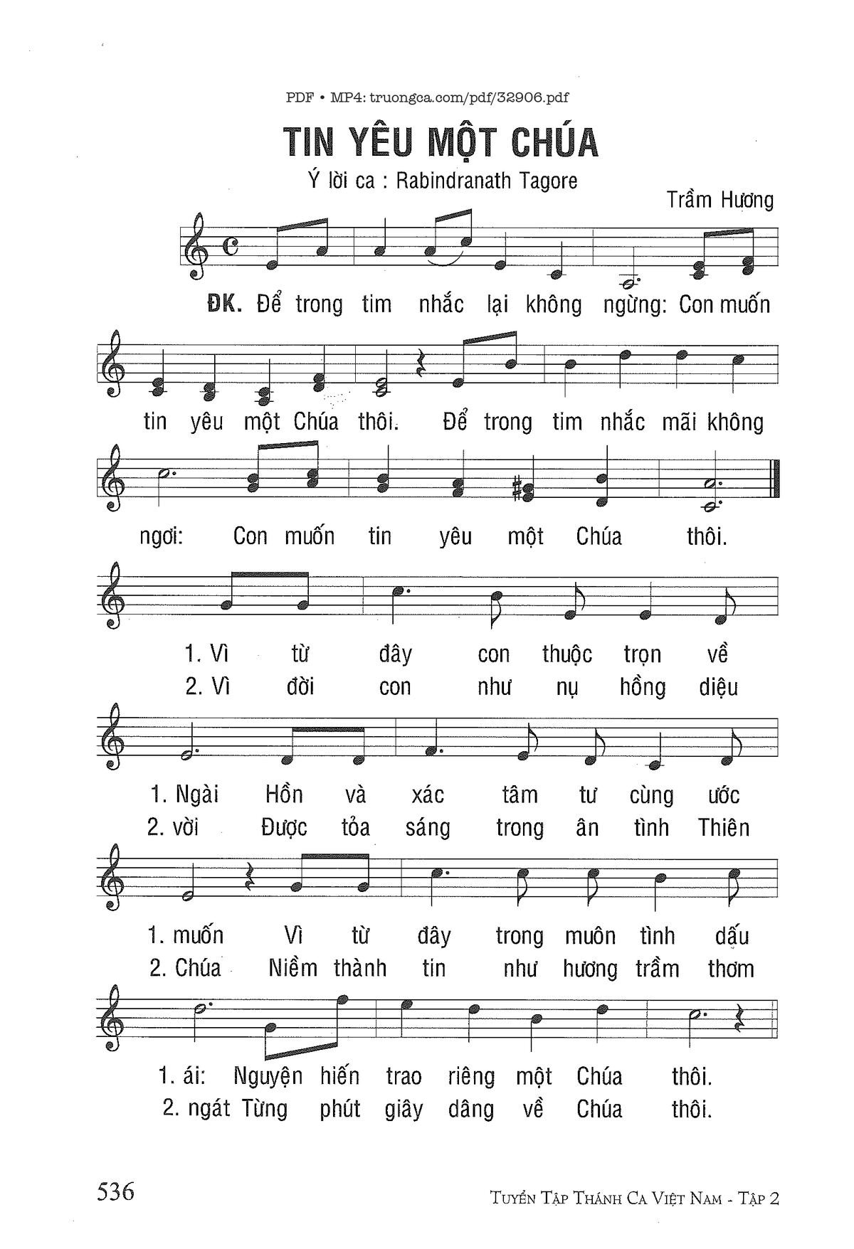 Sheet music Tin Yêu Một Chúa by Trầm Hương and PDF file was posted here to support you to practice singing perfectly. Sheets with notes and chords are for reference only, for non-commercial purposes only, not involved with earning money by buying and selling. Copyright is belong to song writer/author and copyright owner. Truongca.com do not own any copyrighted content. You can download the high-quality PDF files which contain staffs by PDF link above.