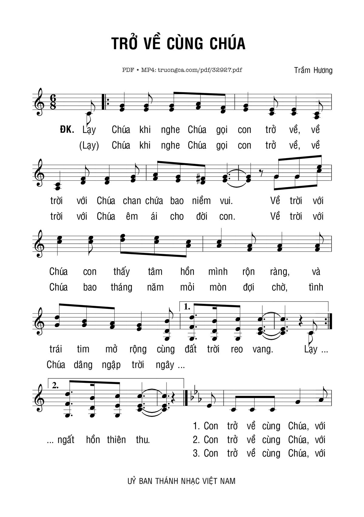 Transposition is the process of moving a song's melody and chords up or down in pitch by a constant interval. The direction of the transposition tool is indicated by a plus (+) sign for up and a minus (-) sign for down. Hover mouse over chords signs to see the chords chart of Trở Về Cùng Chúa song.