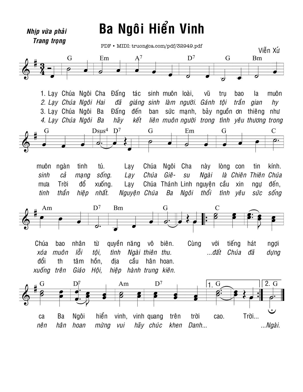 Sheet Ba Ngôi Hiển Vinh PDF, chords