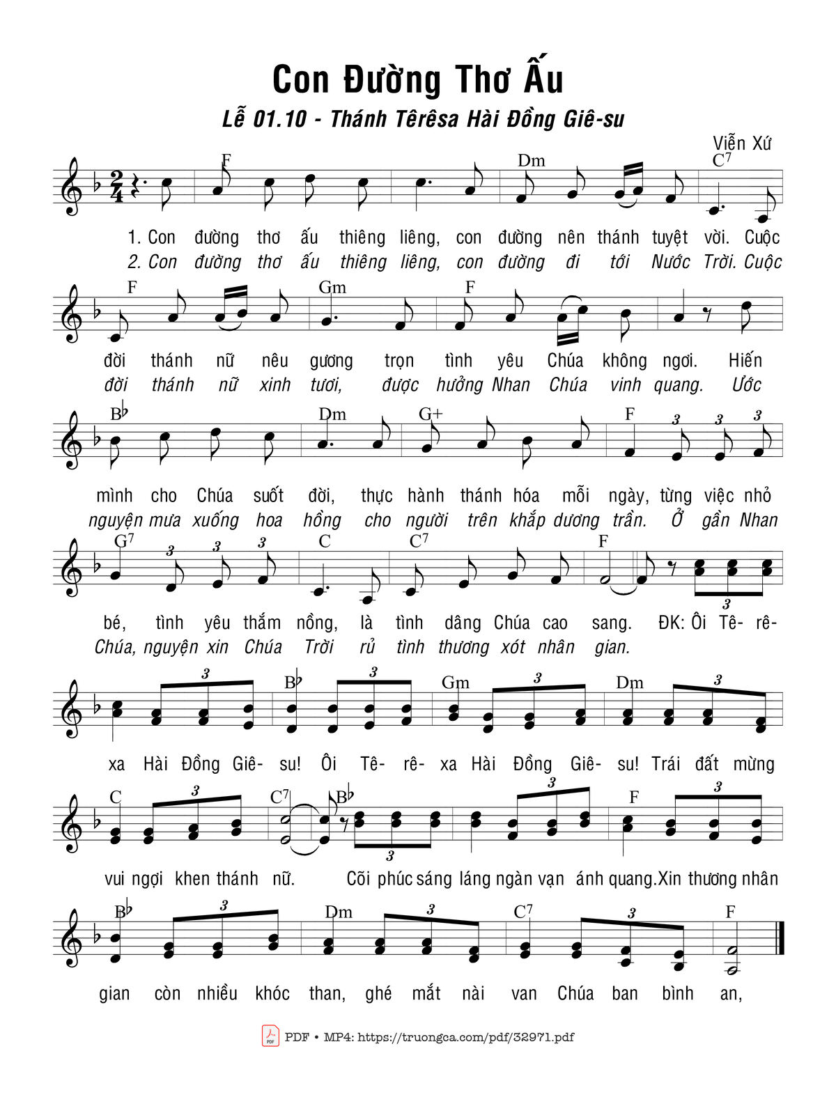 Sheet music Con Đường Thơ Ấu by Viễn Xứ and PDF file was posted here to support you to practice singing perfectly. Sheets with notes and chords are for reference only, for non-commercial purposes only, not involved with earning money by buying and selling. Copyright is belong to song writer/author and copyright owner. Truongca.com do not own any copyrighted content. You can download the high-quality PDF files which contain staffs by PDF link above.