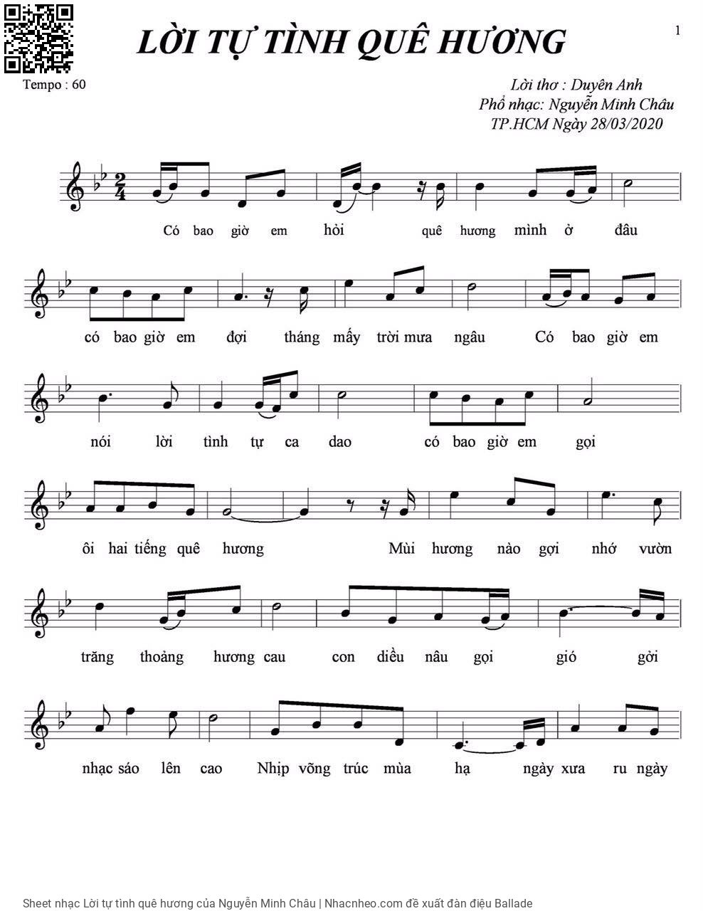 Nguyễn Minh Châu Có bao giờ em hỏi quê hương mình ở đâu [PDF] [Sheet] [Lyrics] [Mp4/Midi]
