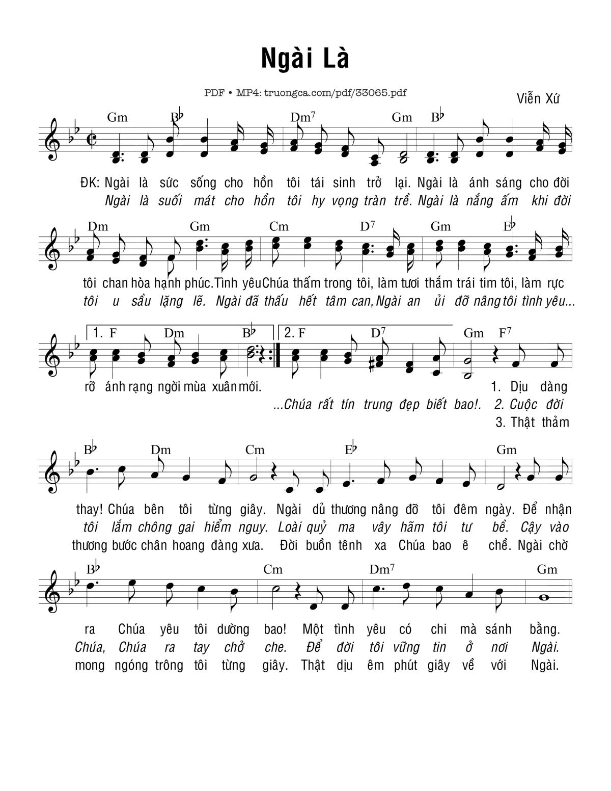 Sheet music Ngài Là by Viễn Xứ and PDF file was posted here to support you to practice singing perfectly. Sheets with notes and chords are for reference only, for non-commercial purposes only, not involved with earning money by buying and selling. Copyright is belong to song writer/author and copyright owner. Truongca.com do not own any copyrighted content. You can download the high-quality PDF files which contain staffs by PDF link above.