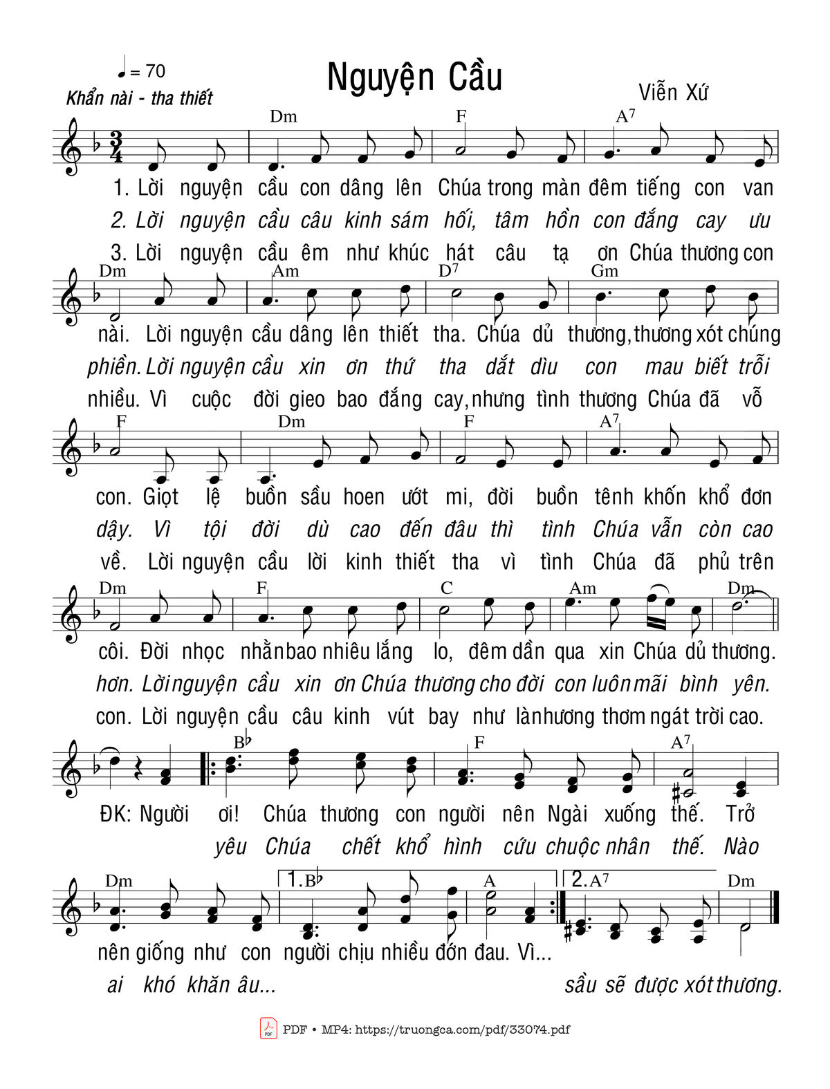 Transposition is the process of moving a song's melody and chords up or down in pitch by a constant interval. The direction of the transposition tool is indicated by a plus (+) sign for up and a minus (-) sign for down. Hover mouse over chords signs to see the chords chart of Nguyện Cầu song.
