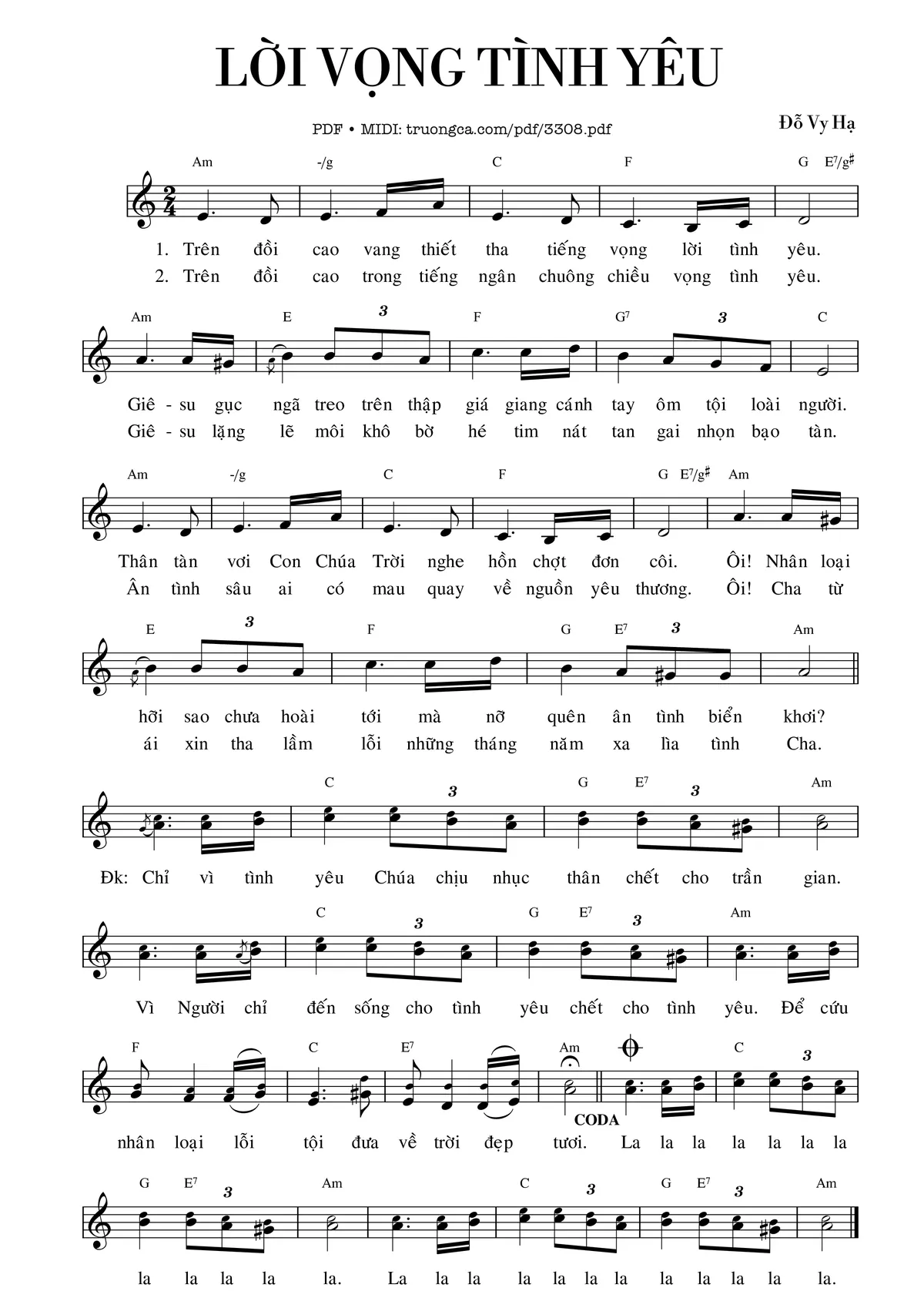 Đỗ Vy Hạ Trên đồi cao trong gió lao xao vọng lời tình yêu [PDF] [Sheet] [Lyrics] [Mp4/Midi]
