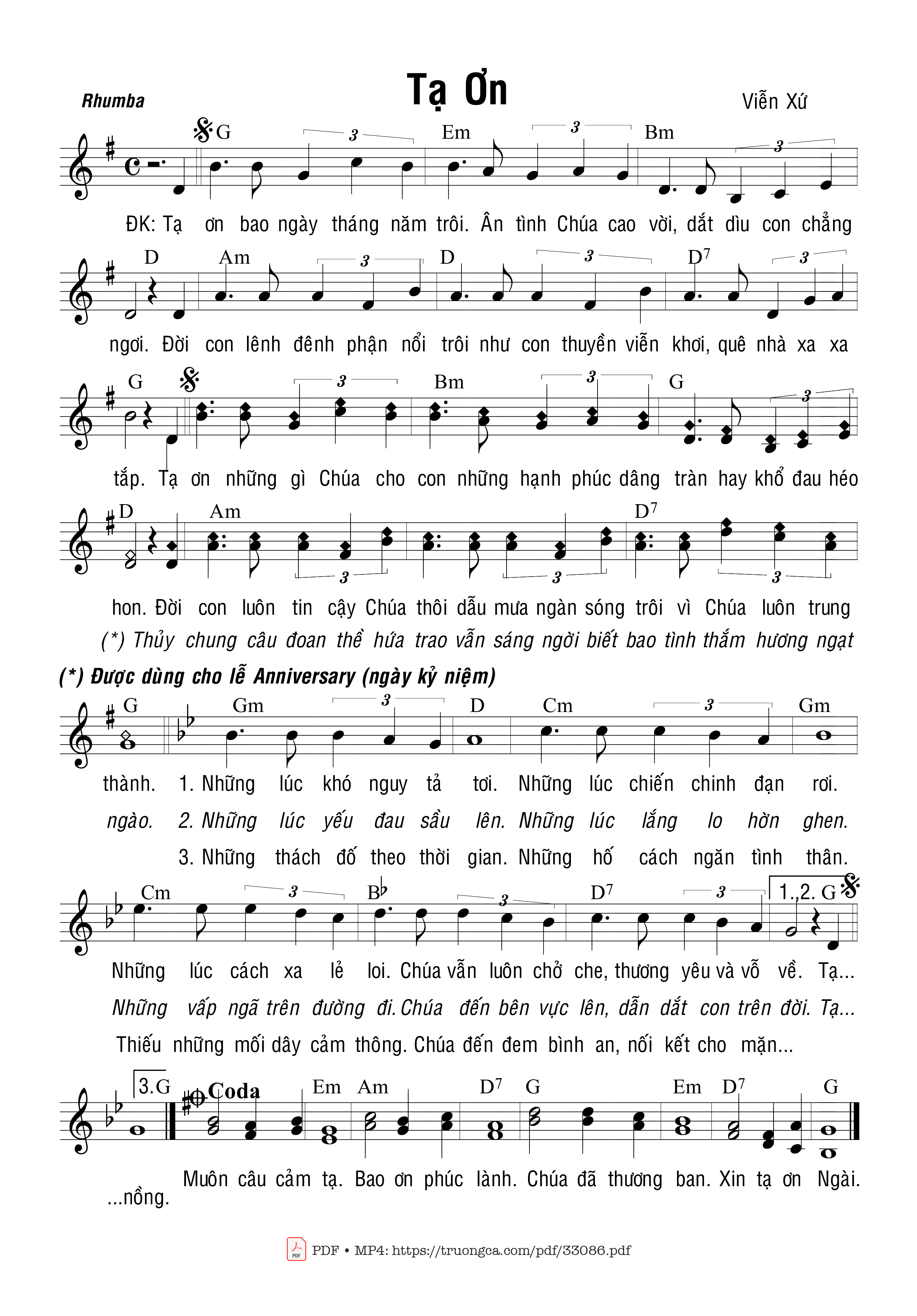 Sheet PDF with the same name Tạ Ơn: