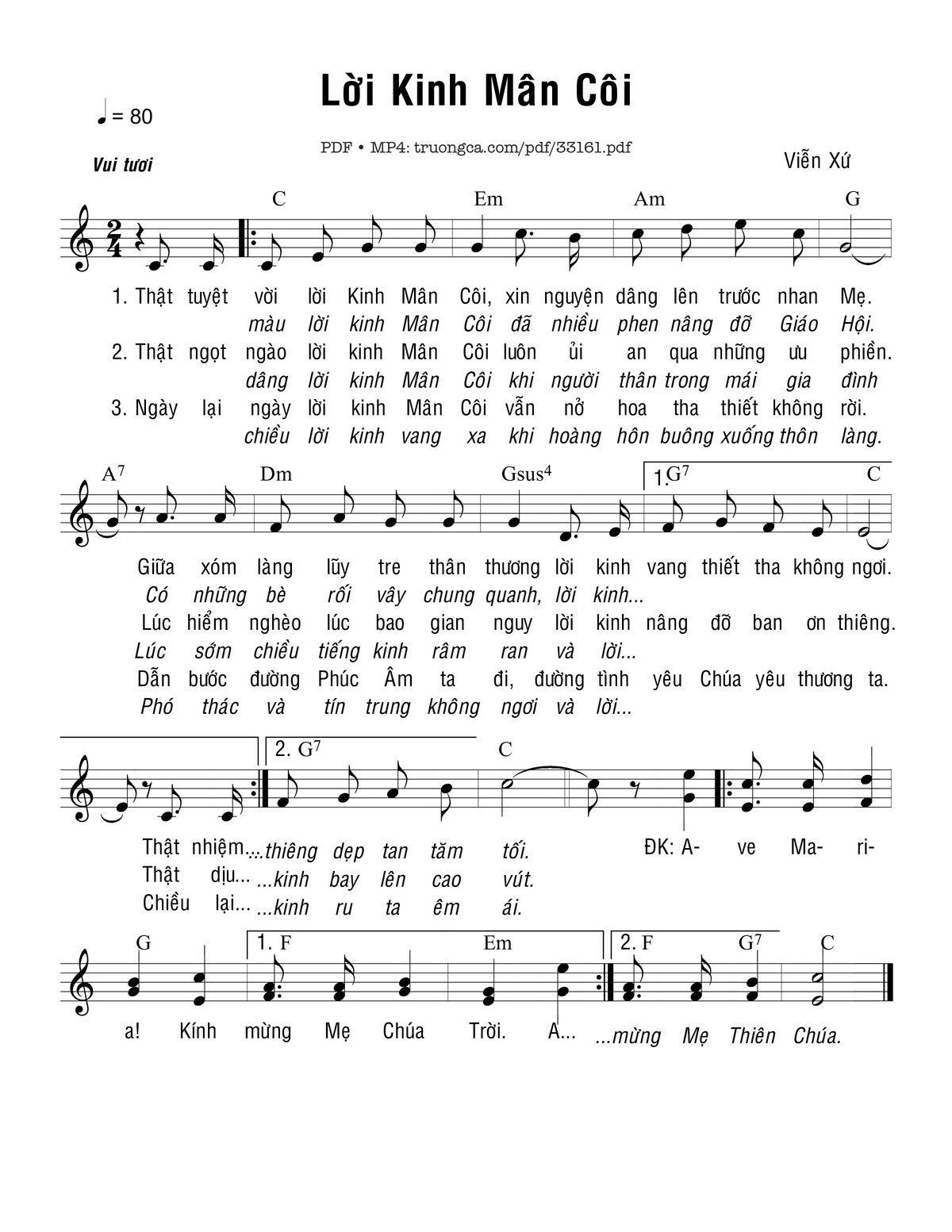 Sheet PDF with the same name Lời Kinh Mân Côi: