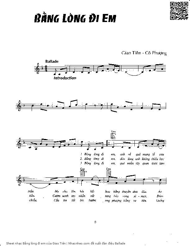 Giao Tiên Bằng lòng đi em anh về quê lo lễ cau trầu [PDF] [Sheet] [Lyrics] [Mp4/Midi]