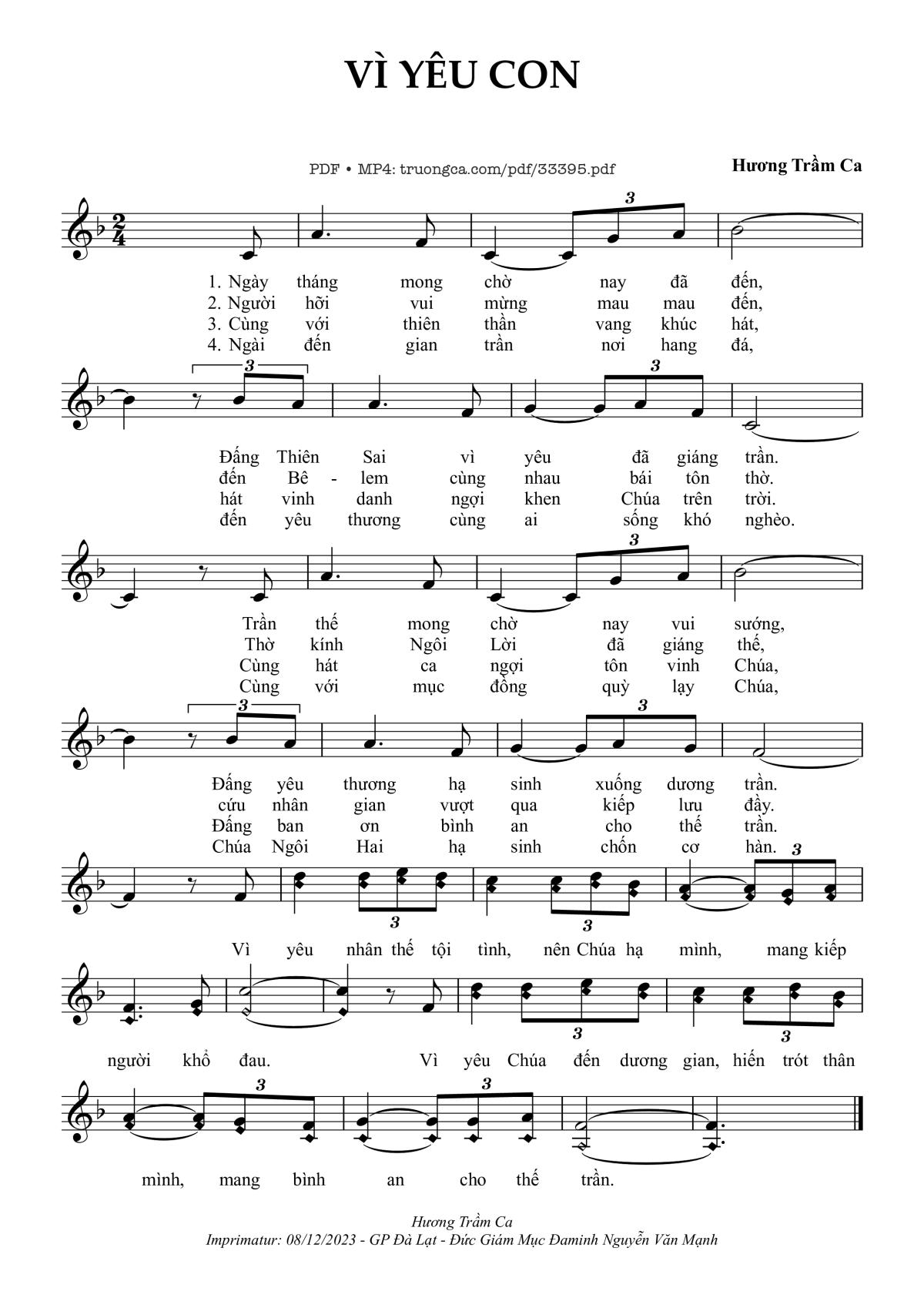 Transposition is the process of moving a song's melody and chords up or down in pitch by a constant interval. The direction of the transposition tool is indicated by a plus (+) sign for up and a minus (-) sign for down. Hover mouse over chords signs to see the chords chart of Vì Yêu Con song.