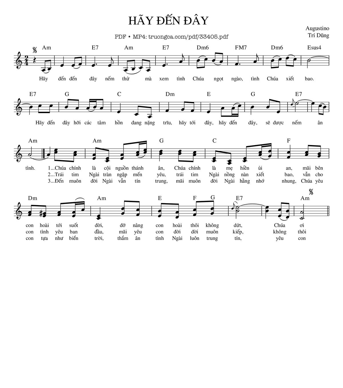 Transposition is the process of moving a song's melody and chords up or down in pitch by a constant interval. The direction of the transposition tool is indicated by a plus (+) sign for up and a minus (-) sign for down. Hover mouse over chords signs to see the chords chart of Hãy Đến Đây song.