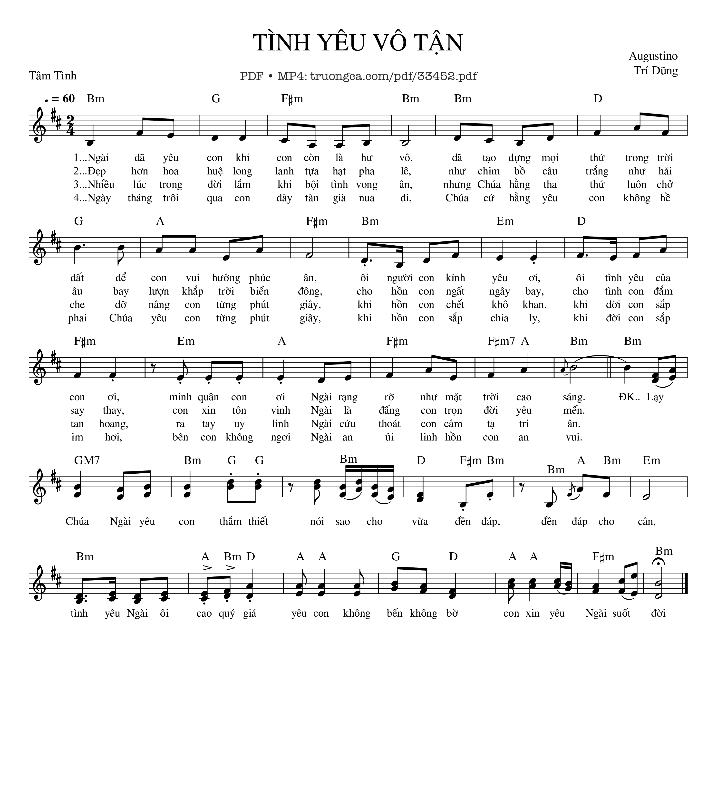 Transposition is the process of moving a song's melody and chords up or down in pitch by a constant interval. The direction of the transposition tool is indicated by a plus (+) sign for up and a minus (-) sign for down. Hover mouse over chords signs to see the chords chart of Tình Yêu Vô Tận song.