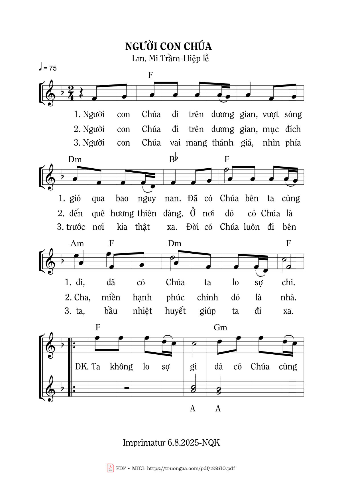 Transposition is the process of moving a song's melody and chords up or down in pitch by a constant interval. The direction of the transposition tool is indicated by a plus (+) sign for up and a minus (-) sign for down. Hover mouse over chords signs to see the chords chart of Người Con Chúa song.