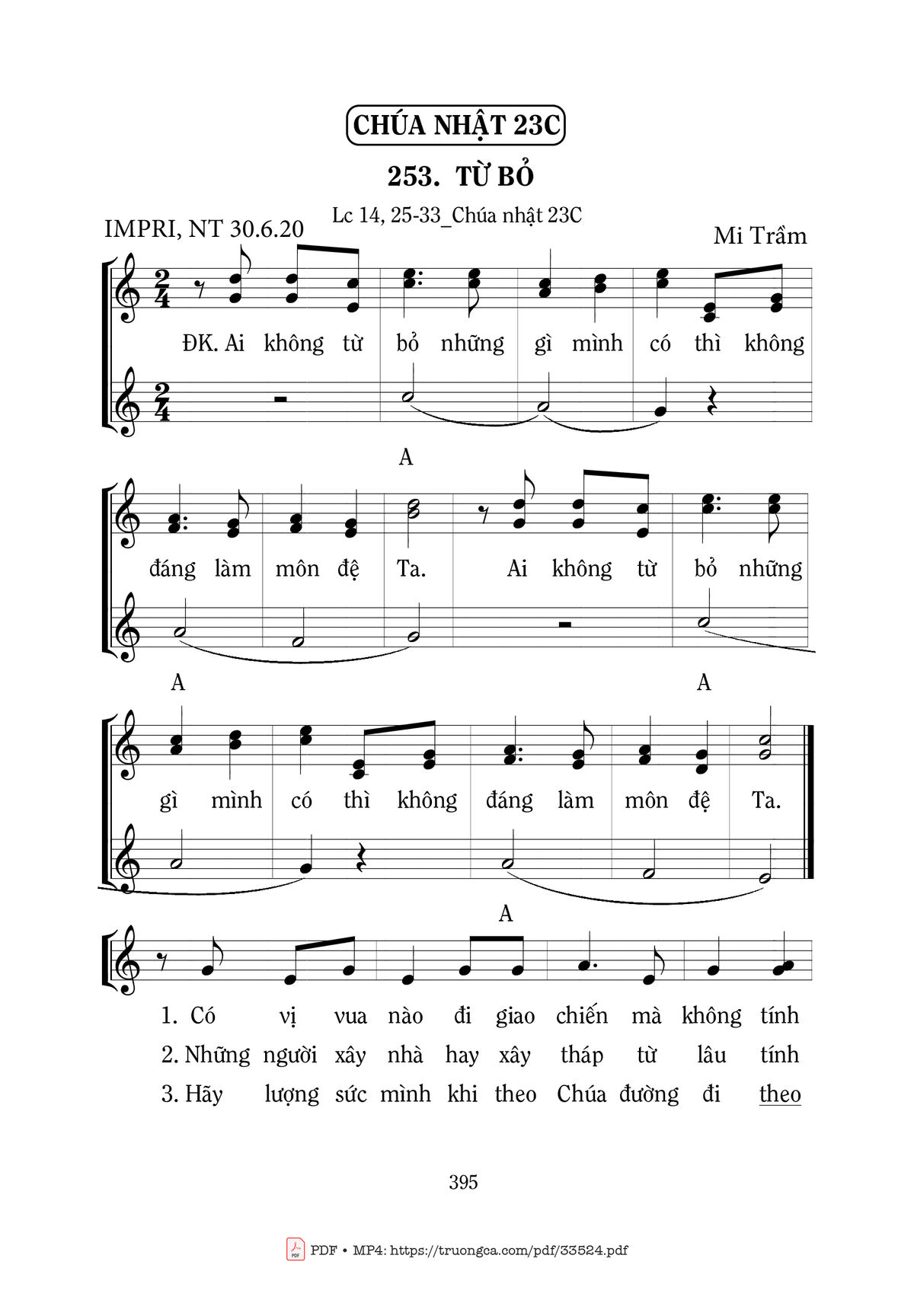 Mi Trầm Ai không từ bỏ những gì mình có thì không đáng làm môn đệ Ta [PDF] [Sheet] [Lyrics] [Mp4/Midi]