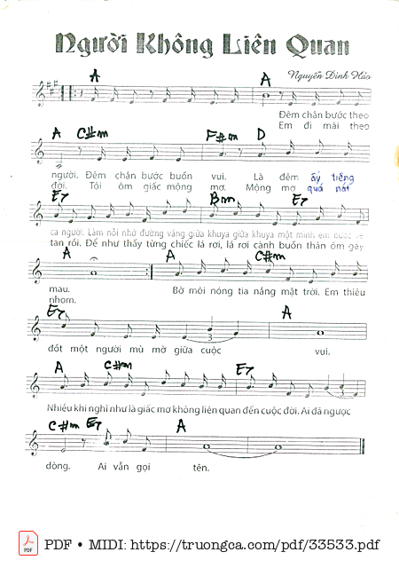 Nguyễn Đình Hảo Đêm chân bứơc theo người đêm chân bứơc buồn vui [PDF] [Sheet] [Lyrics] [Mp4/Midi]