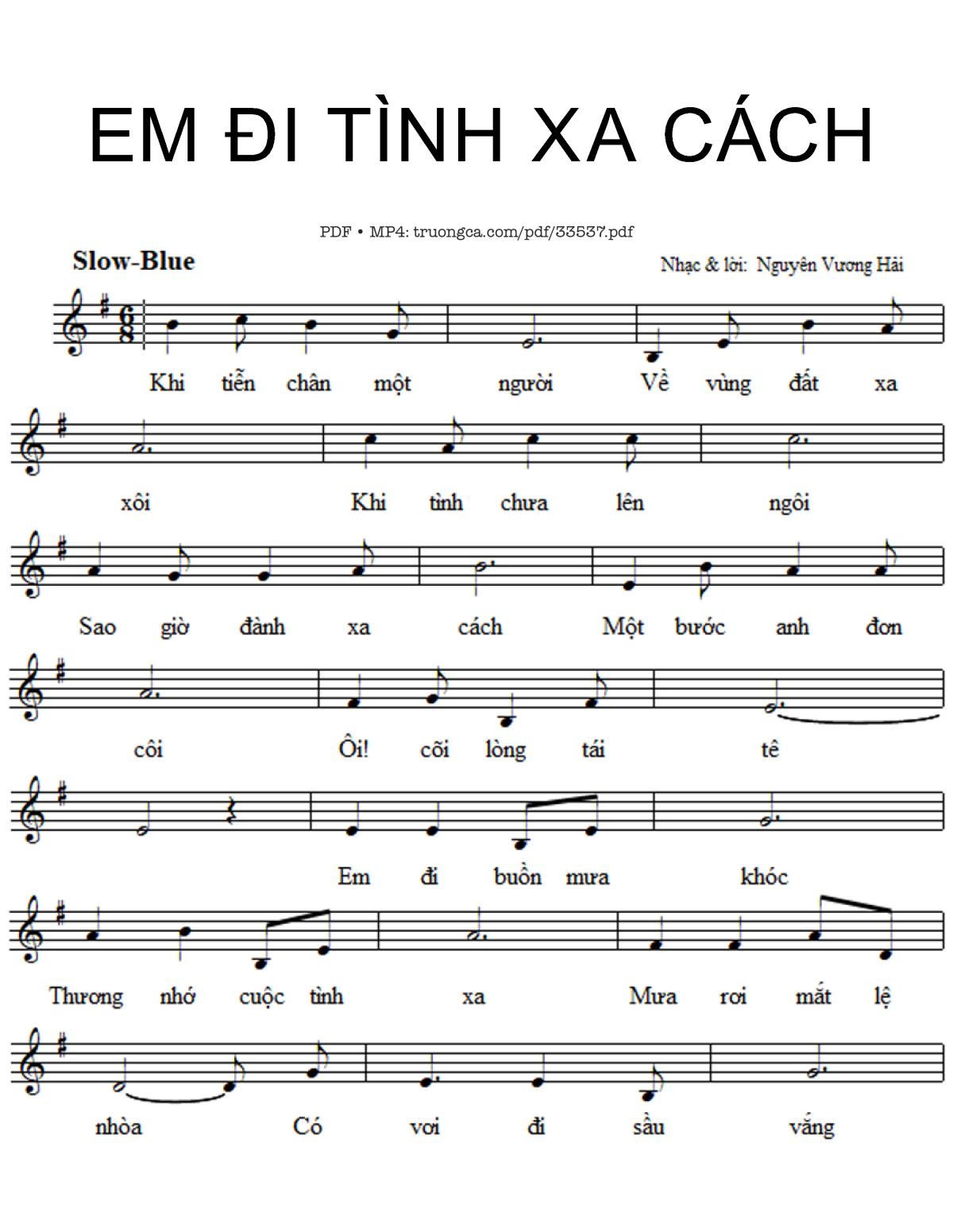 The Videos/audios Em đi tình xa cách by Nguyên Vương Hải were embed from Youtube, Musescore or the other 3rd links. Videos are subject to 3rd's copyright control and may be removed by YouTube's copyright rules and 3rd's policies or maybe included advertisements. If you cannot access to these songs, this mean that have been removed.