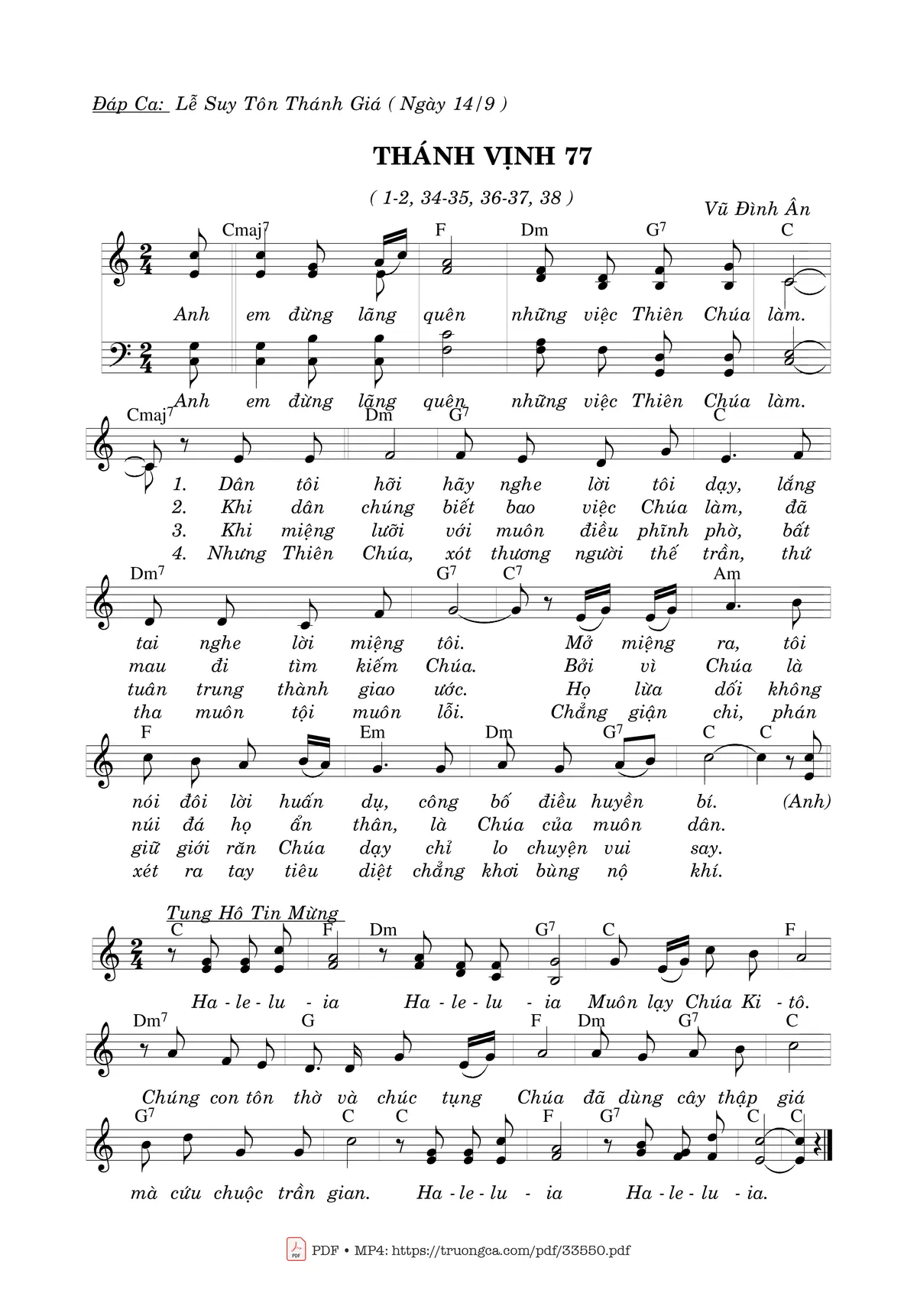 Sheet PDF with the same name Thánh Vịnh 77, Lễ Suy Tôn Thánh Giá 14.09: