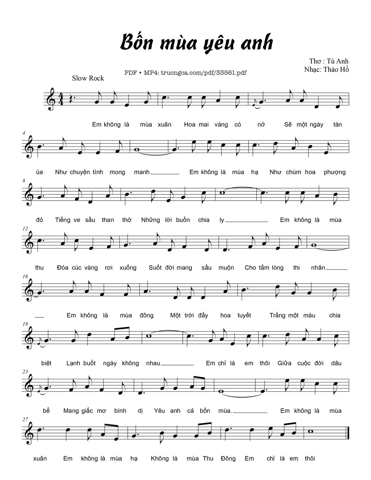 Thảo Hồ Em không là mùa xuân Hoa mai vàng có nở Sẽ một ngày tàn G úa [PDF] [Sheet] [Lyrics] [Mp4/Midi]