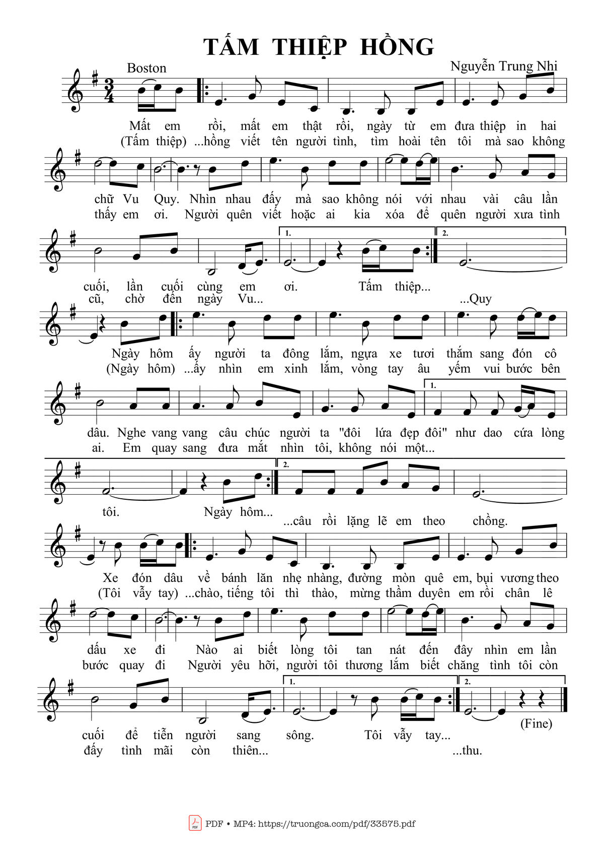 Nguyễn Trung Nhi Mất em rồi mất em thật rồi Từ ngày em đưa thiệp in hai chữ vu quy [PDF] [Sheet] [Lyrics] [Mp4/Midi]