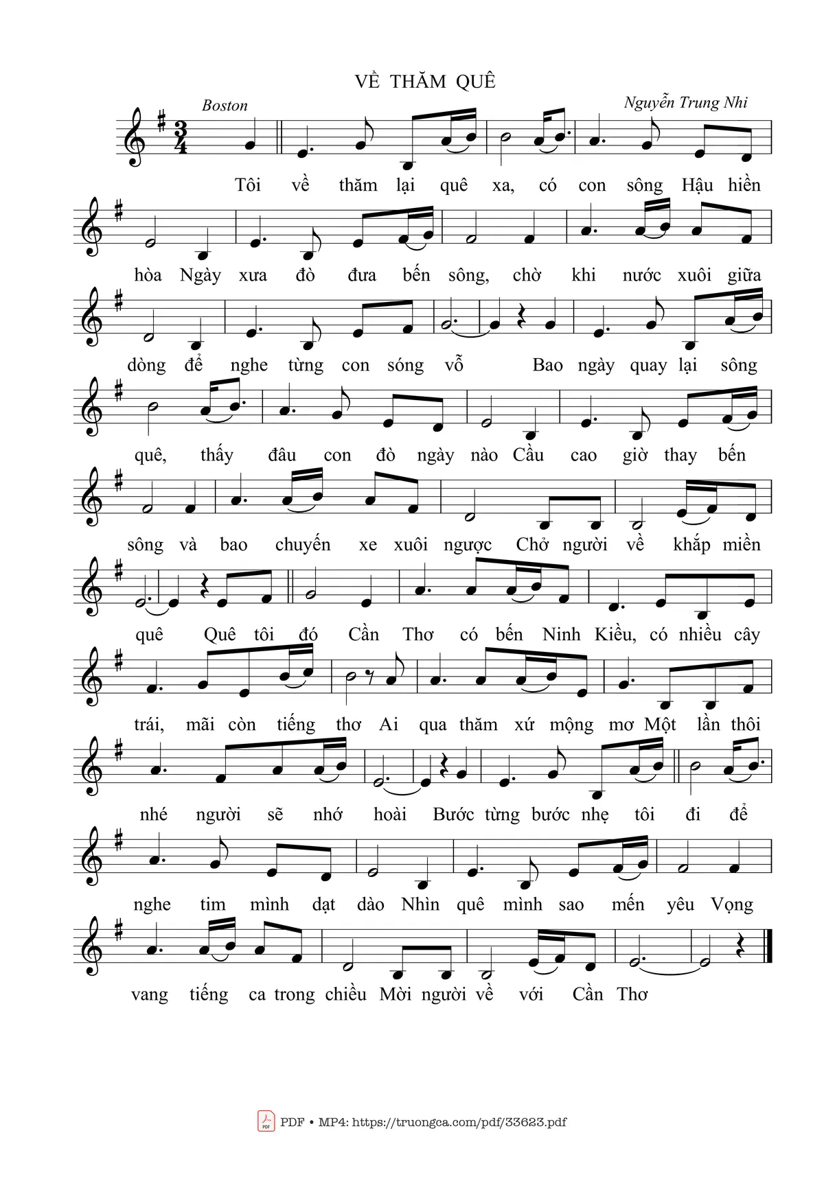 Nguyễn Trung Nhi Tôi về thăm lại quê xa Có con sông Hậu hiền hòa [PDF] [Sheet] [Lyrics] [Mp4/Midi]