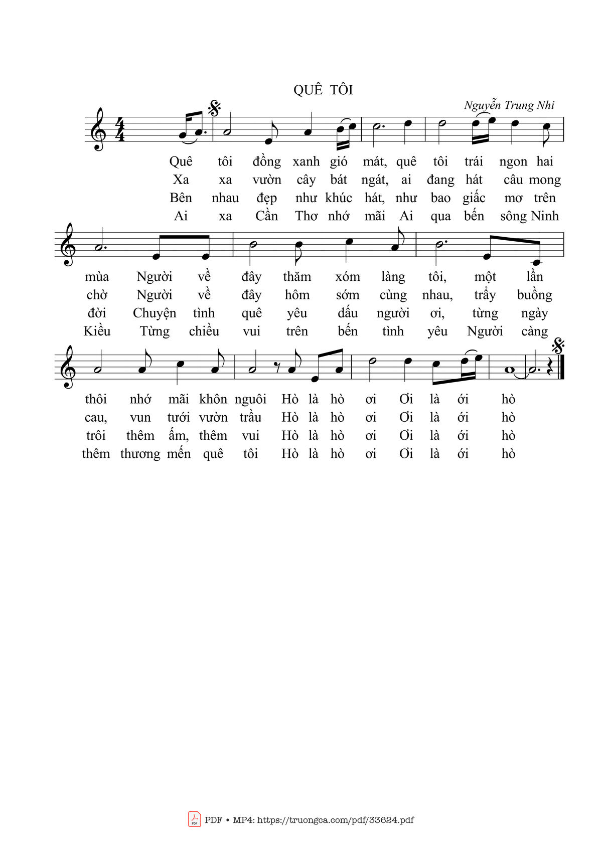 Nguyễn Trung Nhi Quê tôi đồng xanh gió mát Quê tôi trái ngon hai mùa [PDF] [Sheet] [Lyrics] [Mp4/Midi]