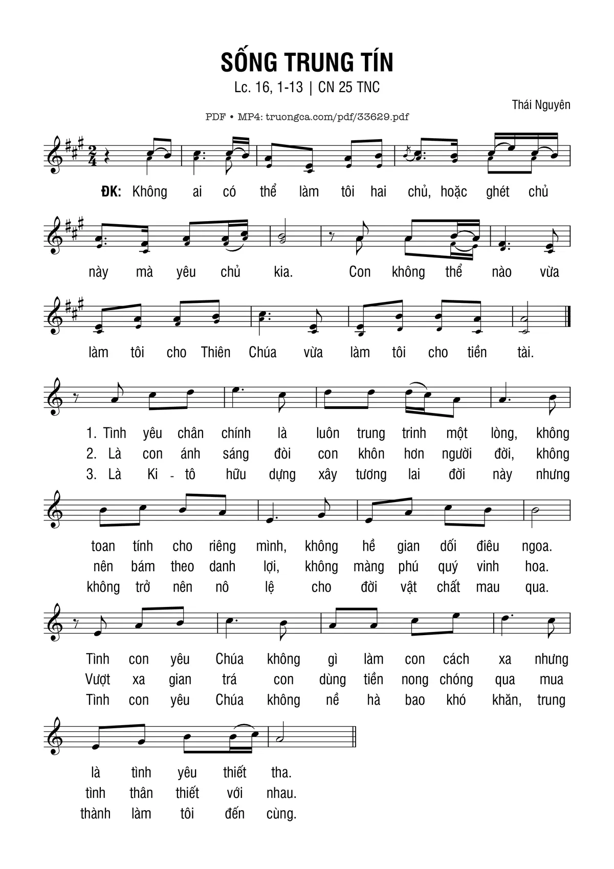 Thái Nguyên Không ai có thể làm tôi hai chủ hoặc ghét chủ này mà yêu chủ kia [PDF] [Sheet] [Lyrics] [Mp4/Midi]
