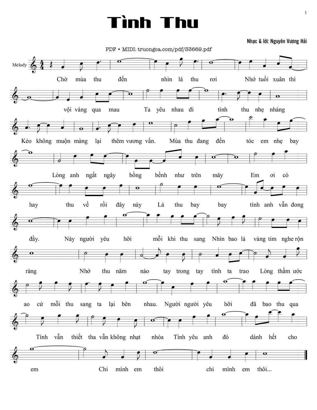 Nguyên Vương Hải Chờ mùa thu đến Nhìn lá thu rơi Nhớ tuổi xuân thì [PDF] [Sheet] [Lyrics] [Mp4/Midi]