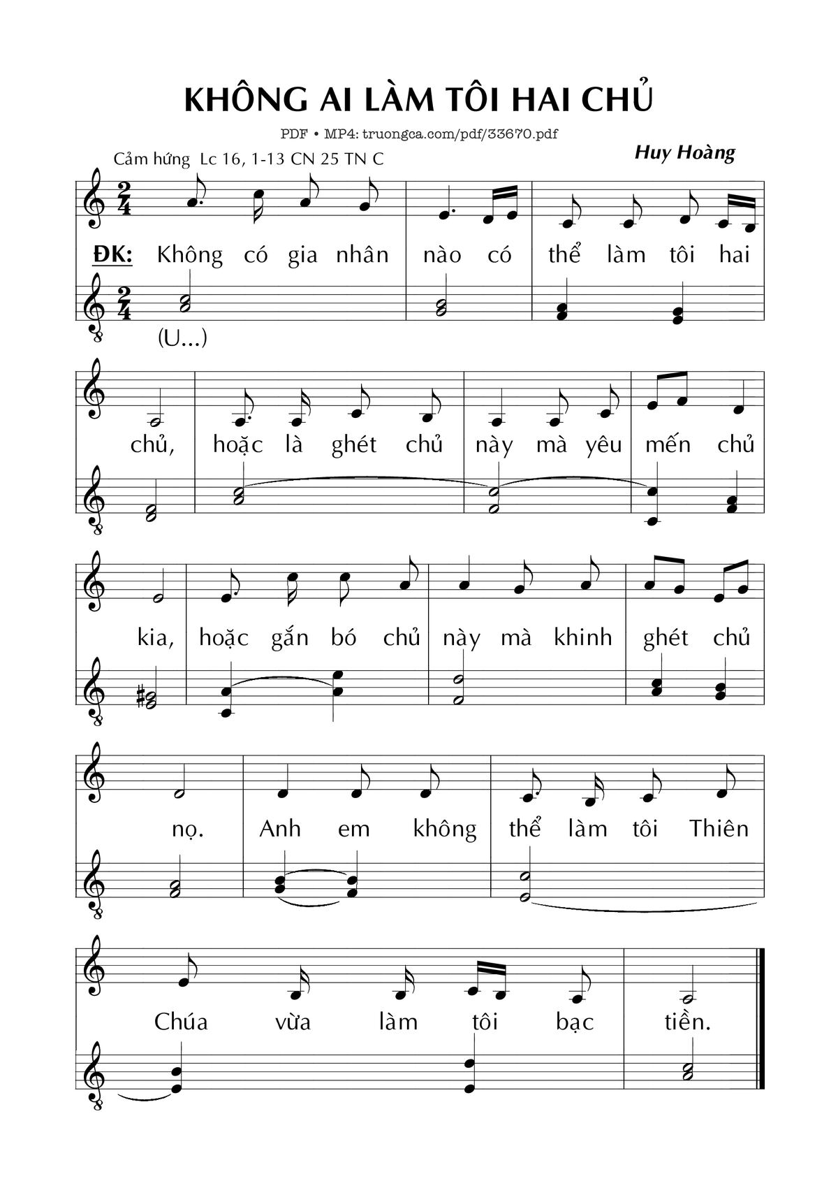 Sheet PDF with the same name Không Ai Làm Tôi Hai Chủ: