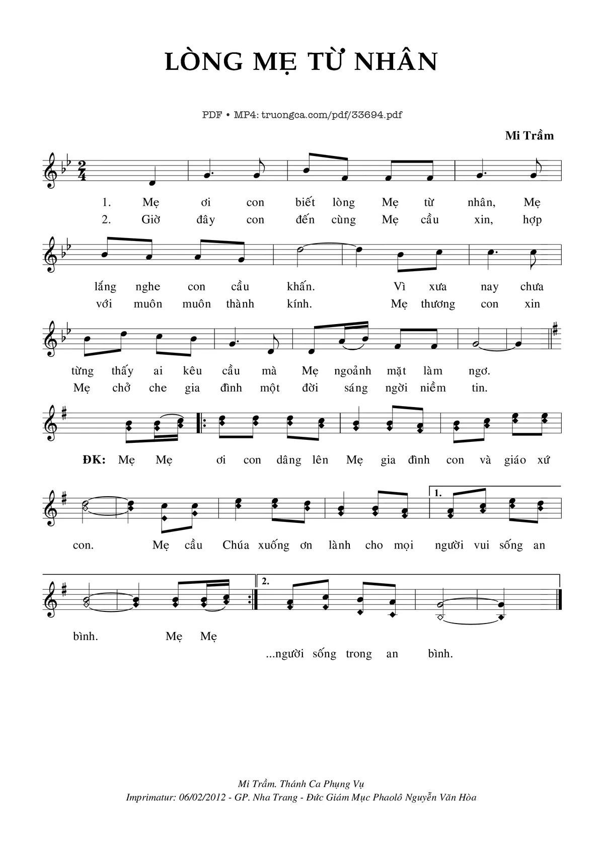 Sheet PDF with the same name Lòng Mẹ Từ Nhân: