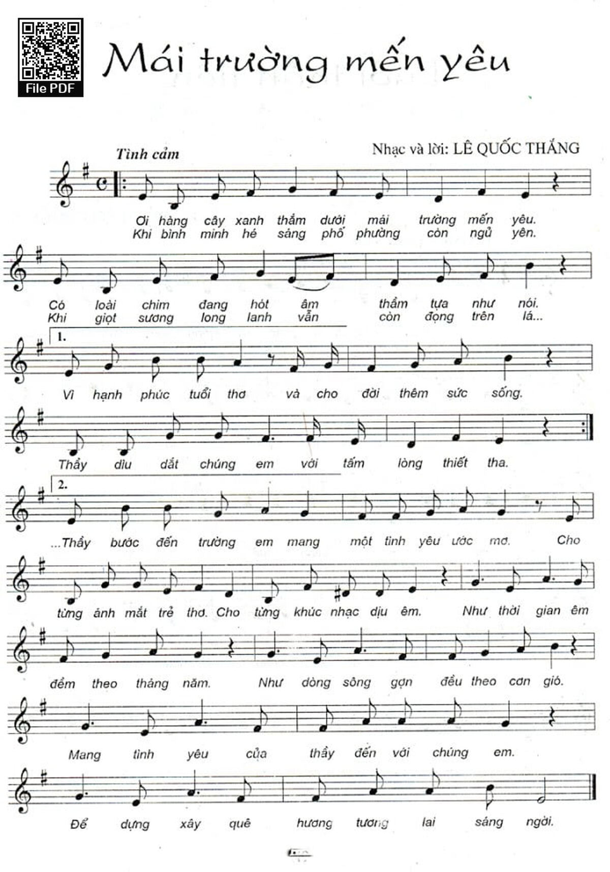 Lê Quốc Thắng Ôi hàng cây xanh thắm dưới mái trường mến yêu [PDF] [Sheet] [Lyrics] [Mp4/Midi] [Story and comment]