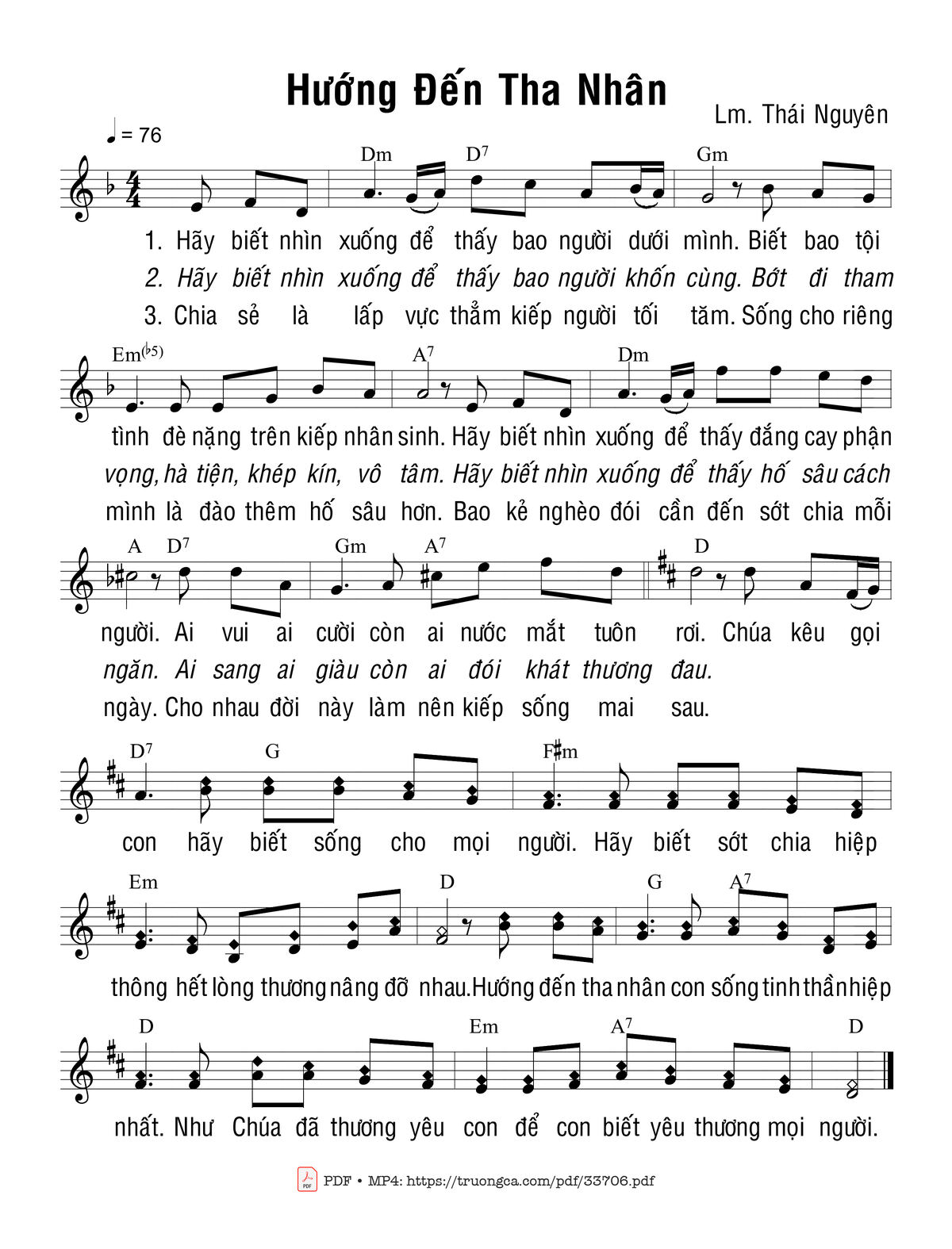 Thái Nguyên Hãy biết nhìn xuống để thấy bao người dưới mình [PDF] [Sheet] [Lyrics] [Mp4/Midi]