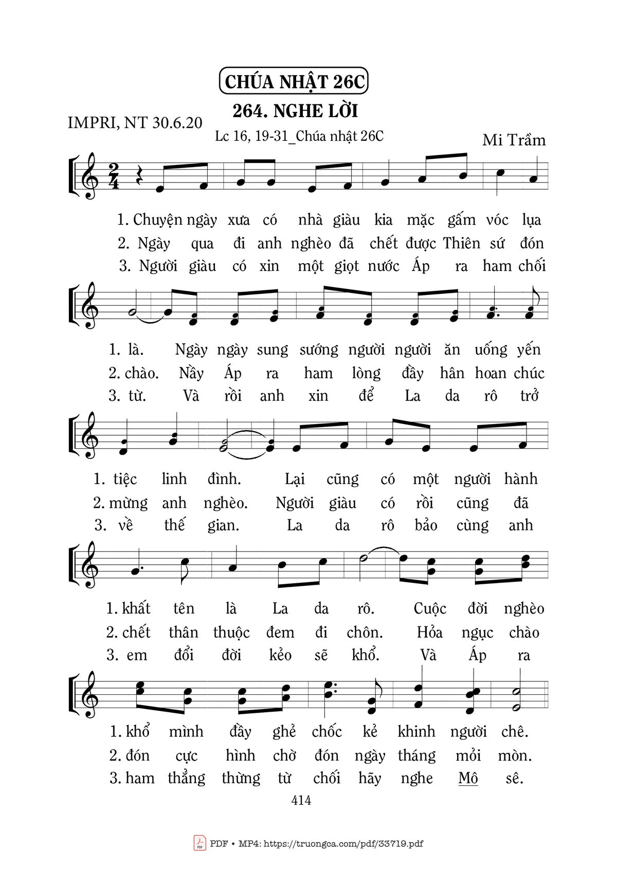 Điệp khúc. Chúng đã có Mô sê và các Tiên tri. Lời rao giảng mỗi ngày hãy nghe các ngài. Nếu không nghe Mô sê và các Tiên tri. Dù kẻ chết sống lại chúng chẳng nghe đâu.