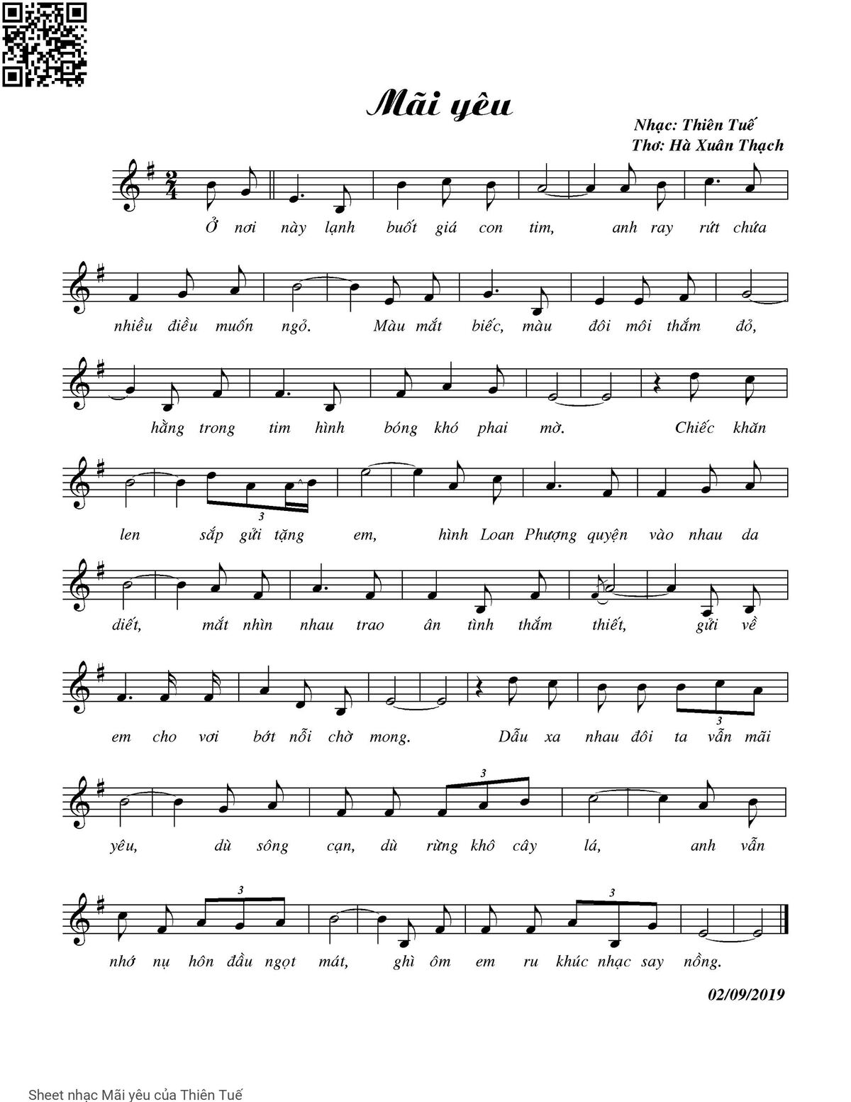 The Videos/audios Mãi yêu by Thiên Tuế were embed from Youtube, Musescore or the other 3rd links. Videos are subject to 3rd's copyright control and may be removed by YouTube's copyright rules and 3rd's policies or maybe included advertisements. If you cannot access to these songs, this mean that have been removed.