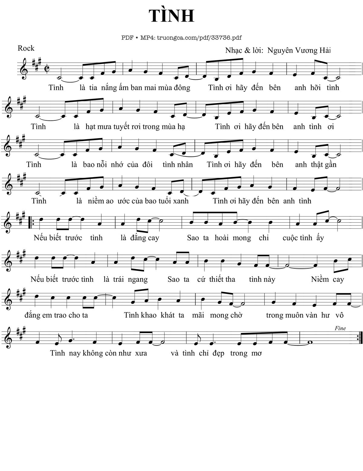 Nguyên Vương Hải Tình là tia nắng ấm ban mai mùa đông Tình ơi hãy đến bên anh hỡi tình [PDF] [Sheet] [Lyrics] [Mp4/Midi]