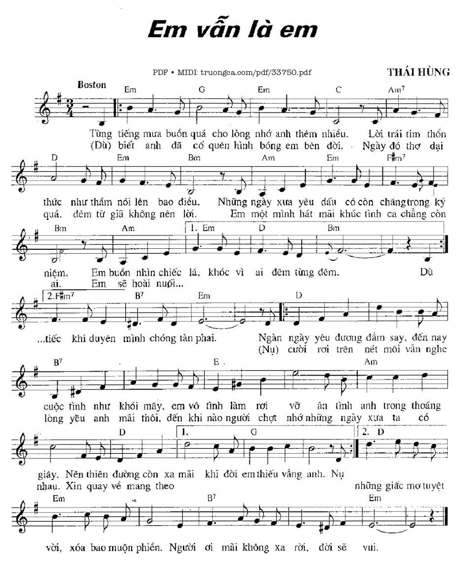 The Videos/audios Em Vẫn Là Em by Thái Hùng were embed from Youtube, Musescore or the other 3rd links. Videos are subject to 3rd's copyright control and may be removed by YouTube's copyright rules and 3rd's policies or maybe included advertisements. If you cannot access to these songs, this mean that have been removed.