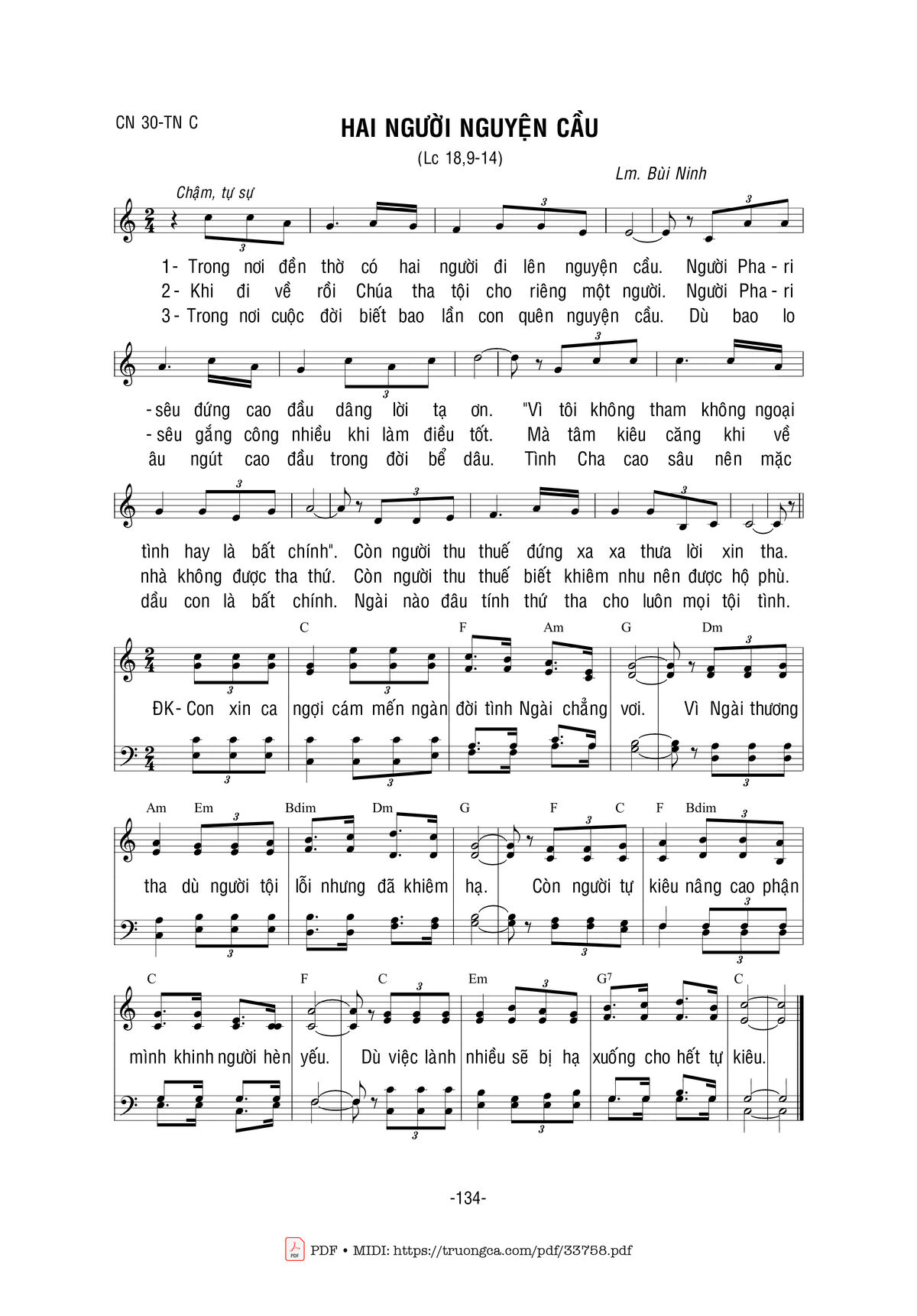 Bùi Ninh Trong nơi đền thờ có hai người đi lên nguyện cầu [PDF] [Sheet] [Lyrics] [Mp4/Midi]