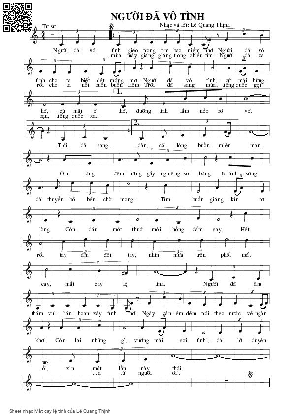 Lê Quang Thịnh Người đã vô tình gieo trong tim bao niềm nhớ [PDF] [Sheet] [Lyrics] [Mp4/Midi]