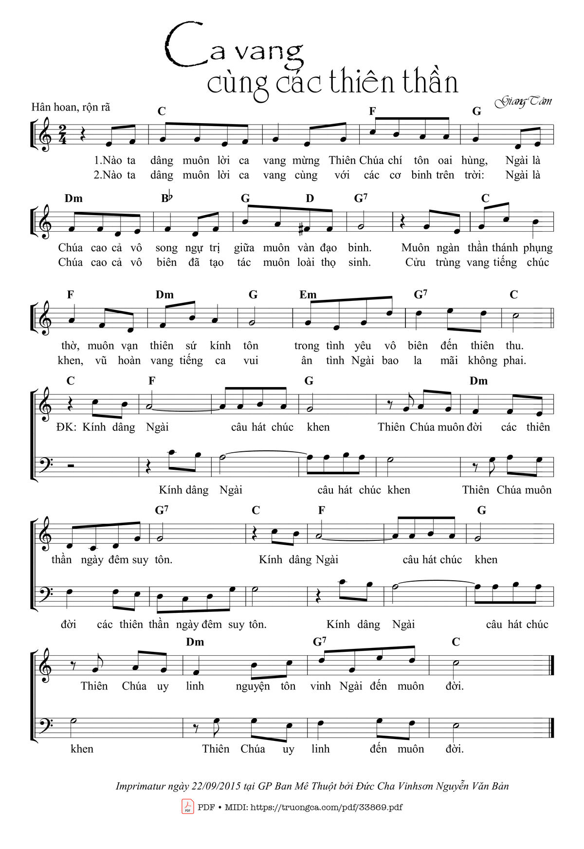 Giang Tâm Nhập Lễ Lễ Cá Tổng Lãnh Thiên Thần mprimatur [PDF] [Sheet] [Lyrics] [Mp4/Midi]