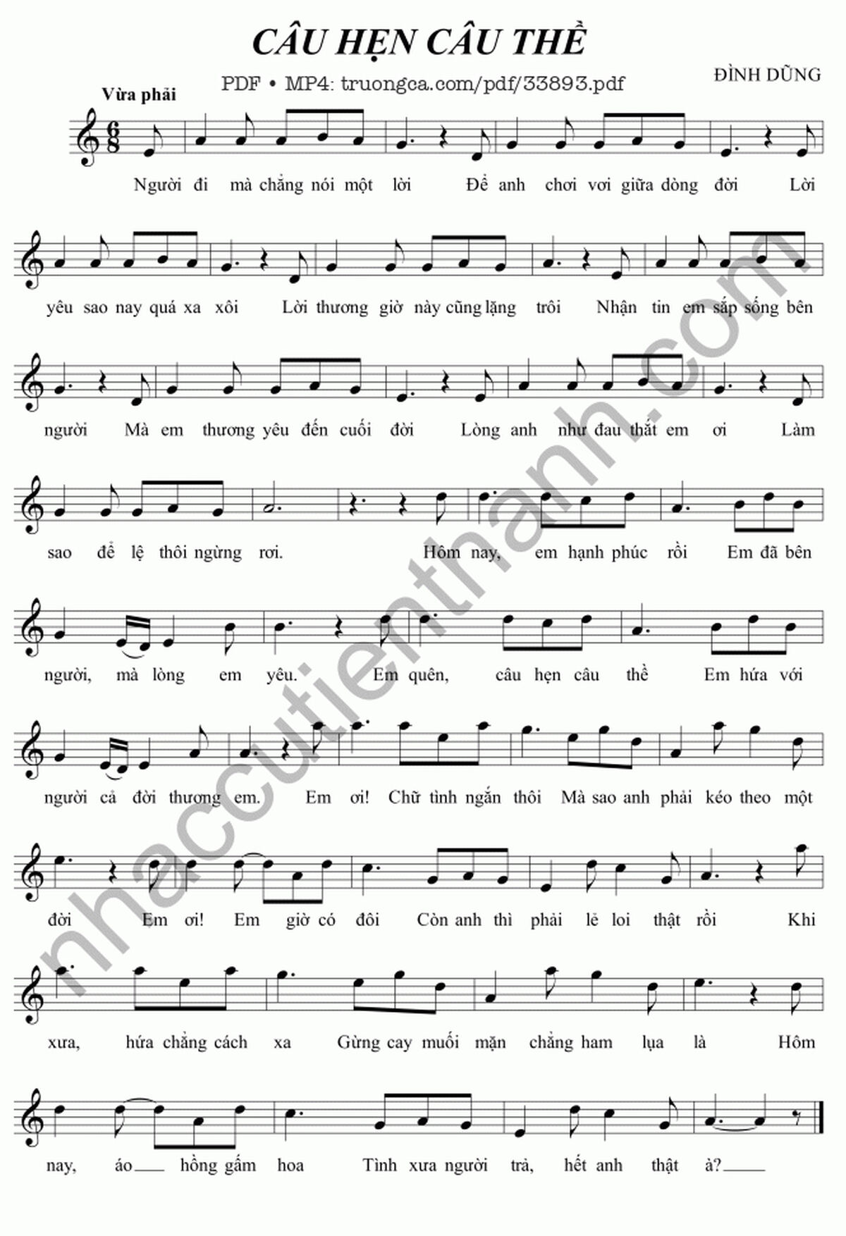 Transposition is the process of moving a song's melody and chords up or down in pitch by a constant interval. The direction of the transposition tool is indicated by a plus (+) sign for up and a minus (-) sign for down. Hover mouse over chords signs to see the chords chart of Câu hẹn câu thề song.